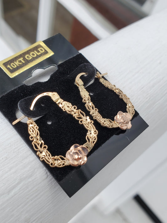 10k Gold Designer Michael Anthony Rose Filagre Oblong hoop earrings