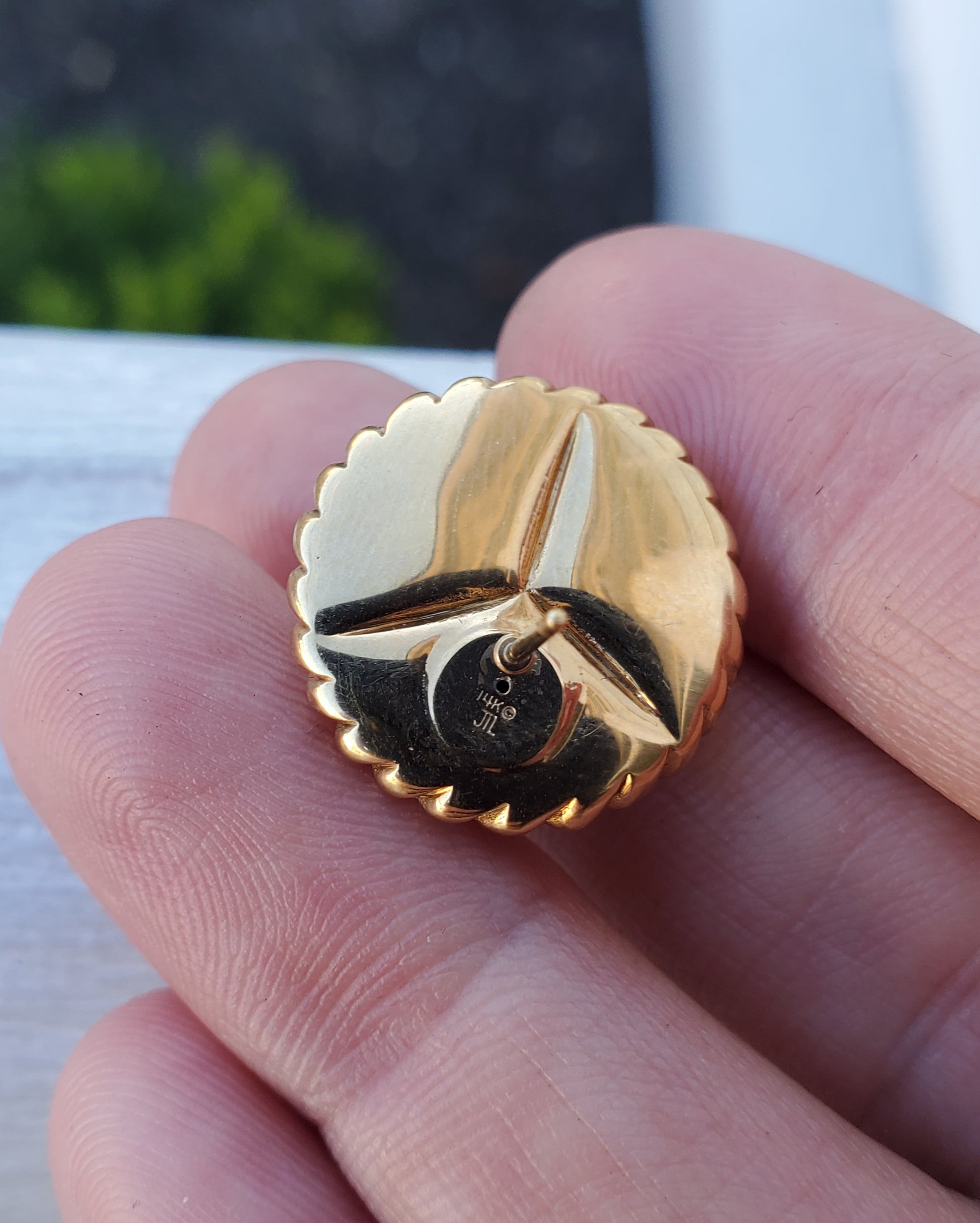 14k Yellow Gold Designer JIL 5mm Pearl Stud Earrings with Beaded Studded Halos. Vintage from the 1960's butterfly pushbacks. Total weight 3.5 grams.