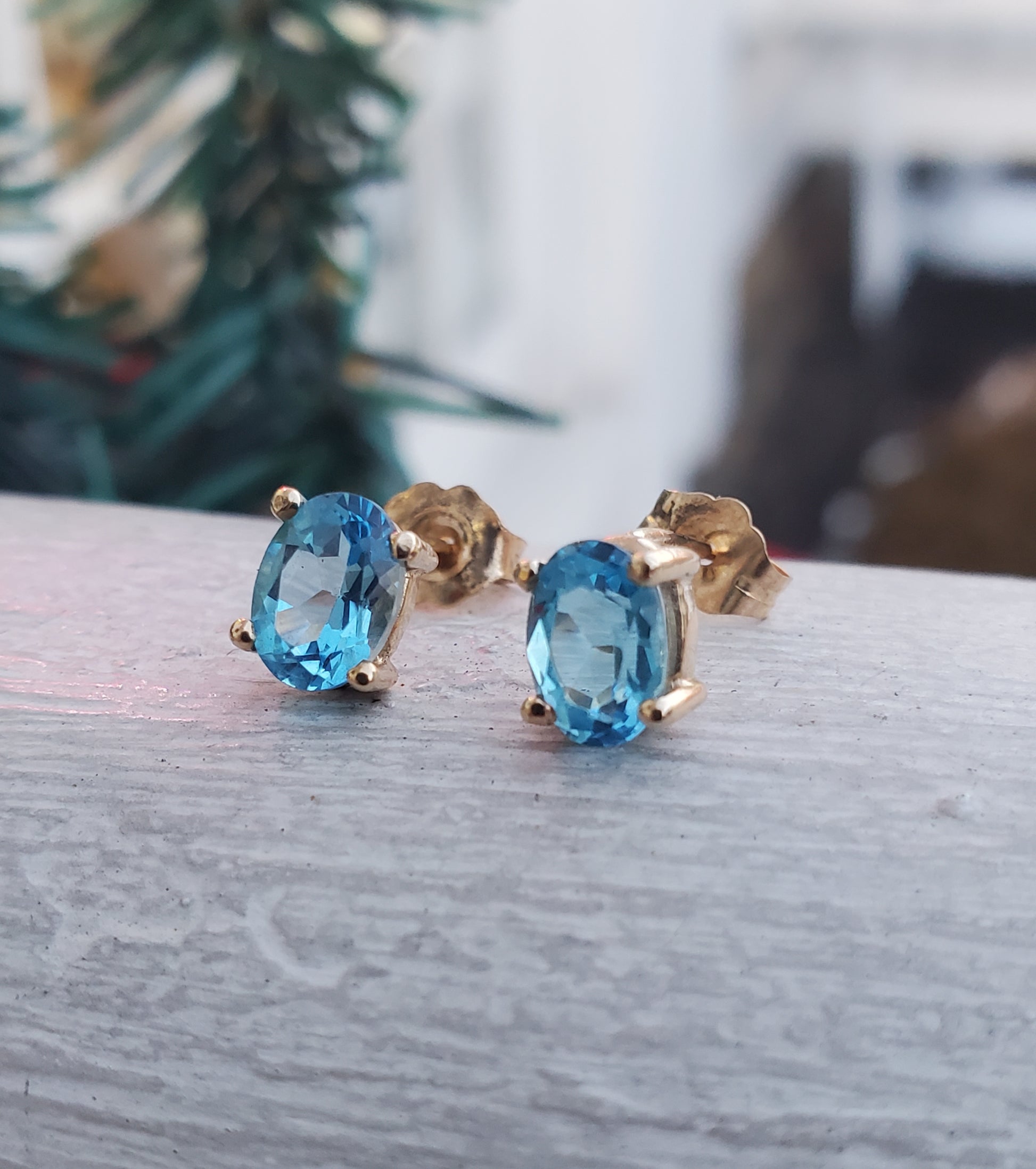 Elevate your style with our stunning 14k Solid Gold 1.00 TCW Oval Hampton Blue Topaz Stud Earrings. The 4 prong settings and butterfly pushbacks ensure a secure fit. Each earring boasts a half carat gemstone, adding up to a total weight of 1.6 grams. Upgrade your look with these elegant and timeless earrings.