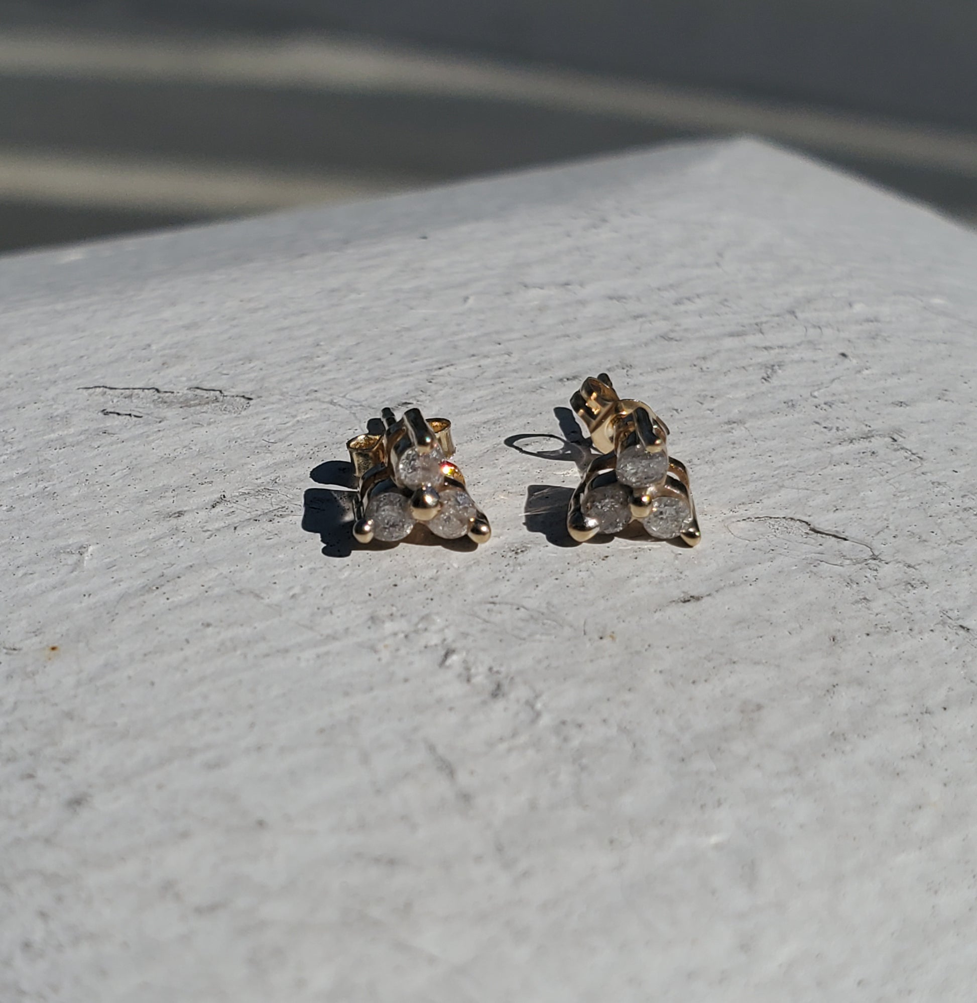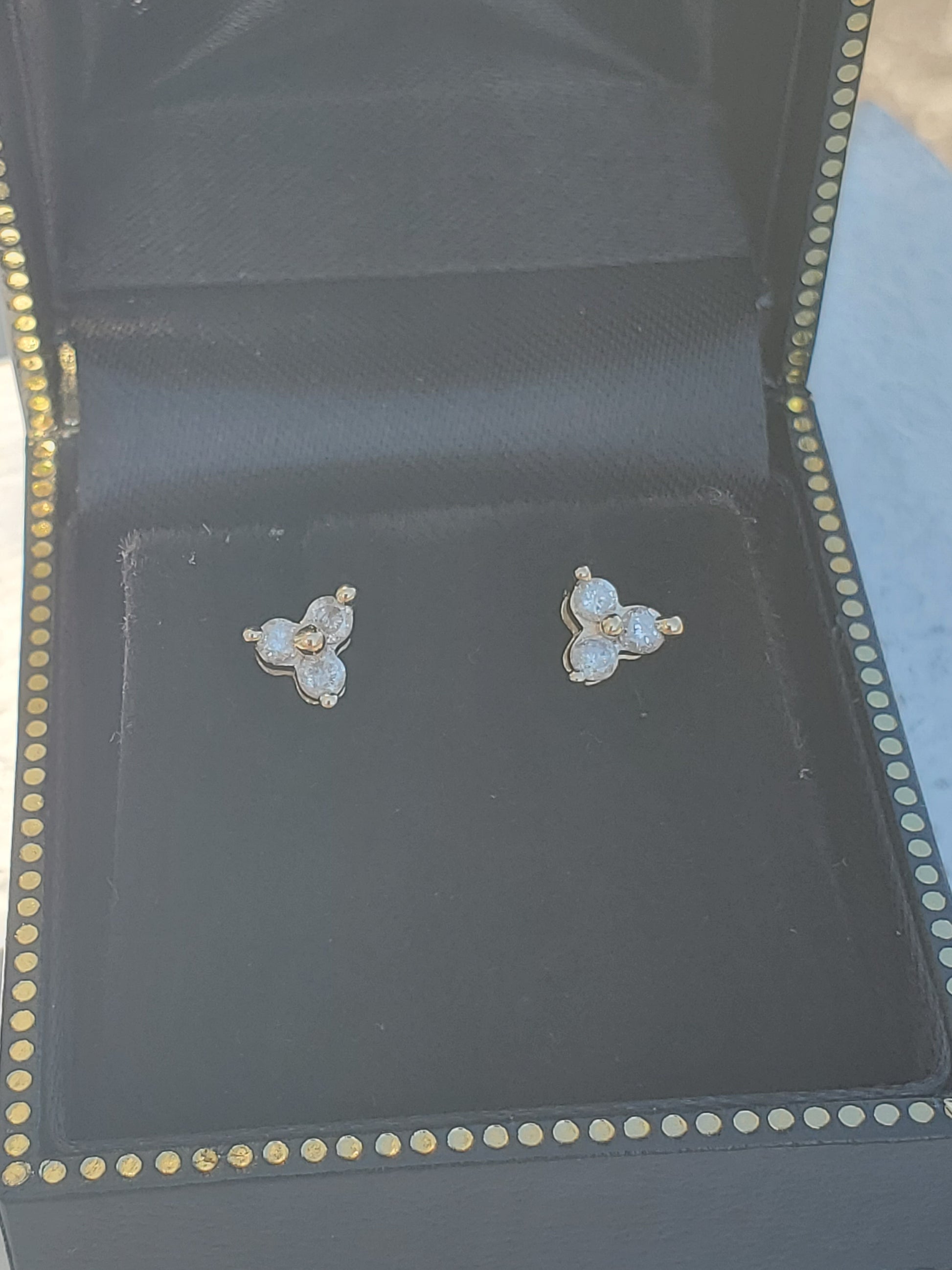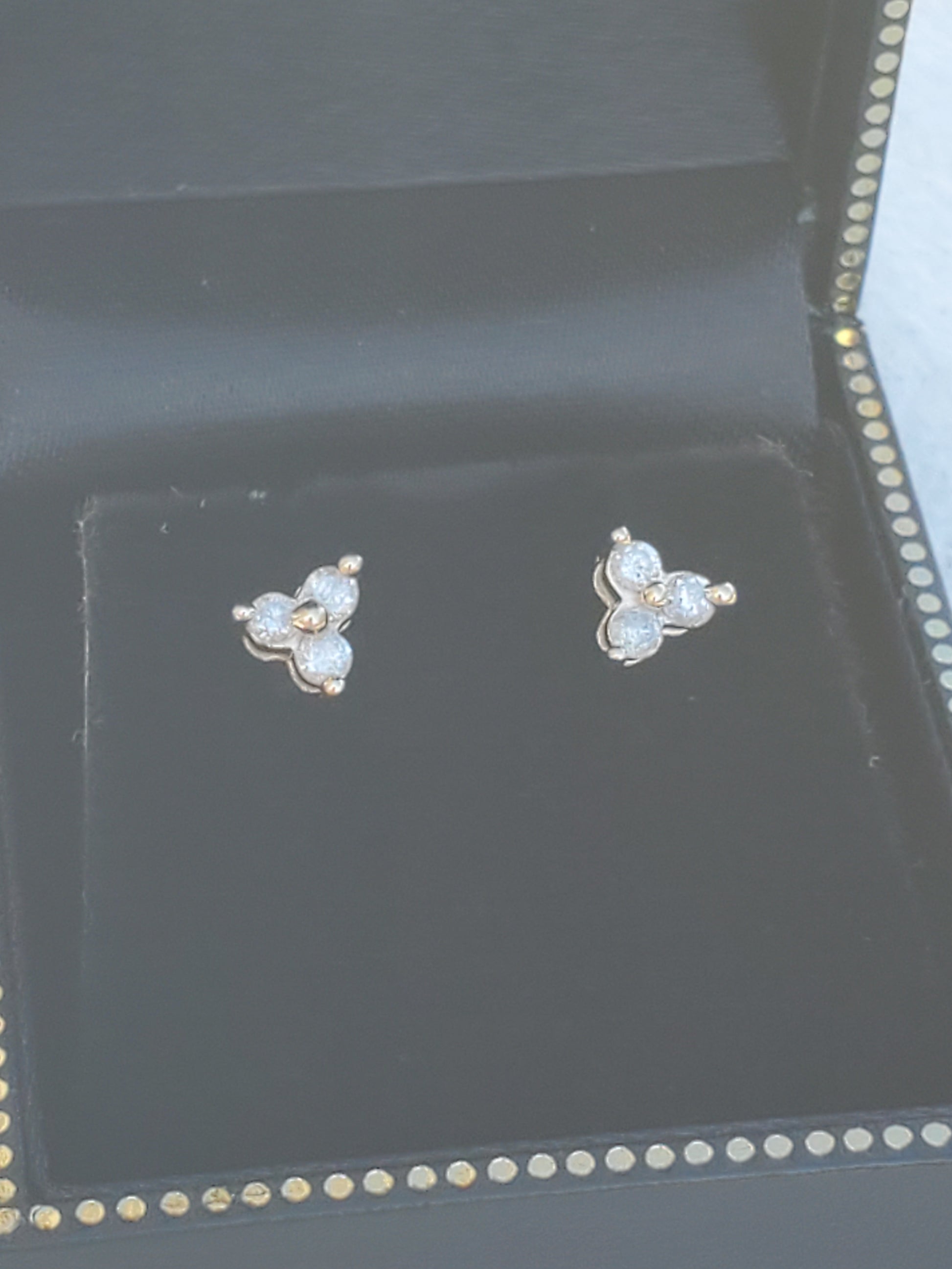 14k Solid Gold Genuine Diamond Tripolo Cluster Stud Earrings