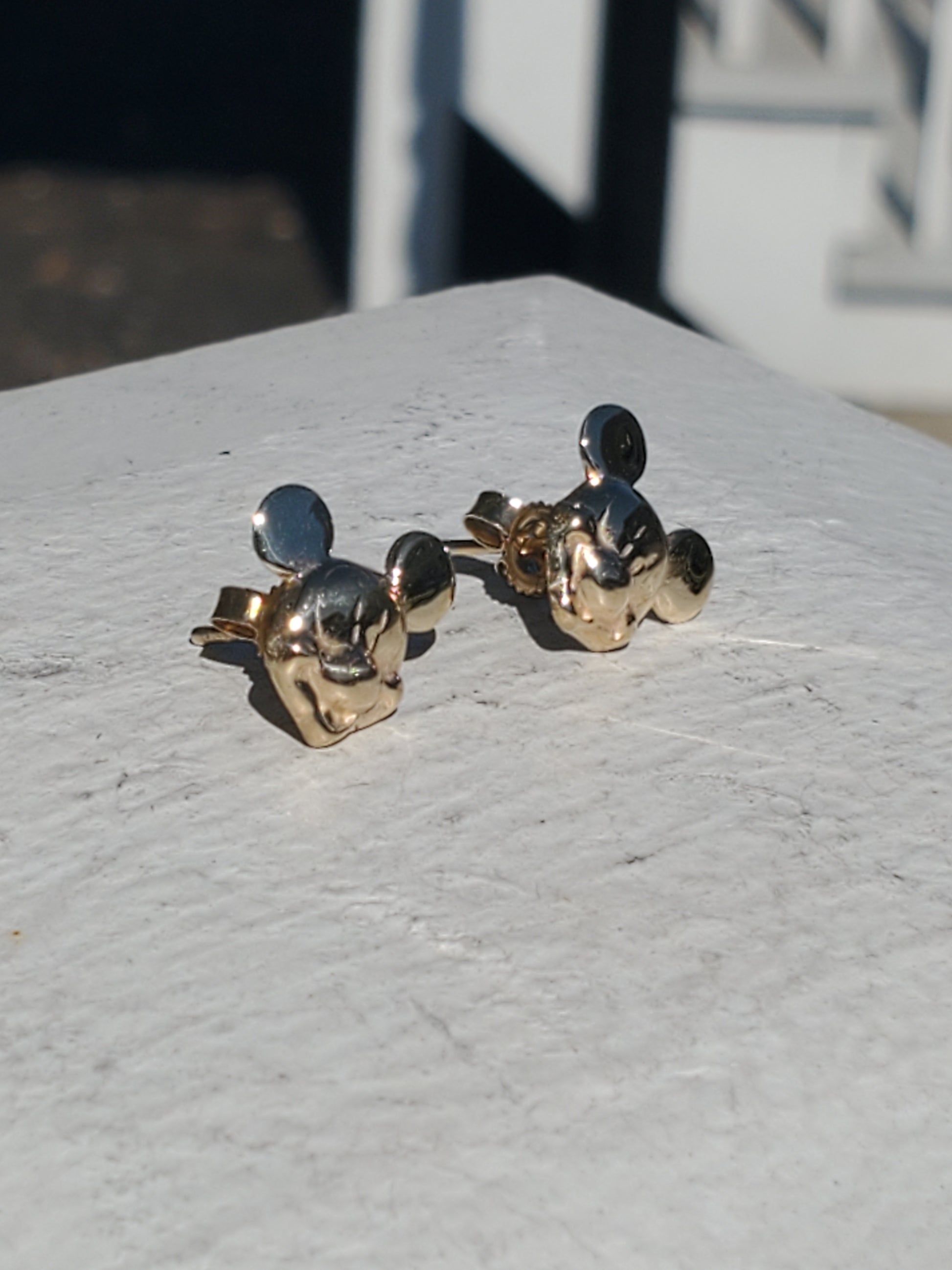 Enhance your style with these 14k Solid Gold Mickey Mouse Head Stud Earrings. Made with butterfly pushbacks, these earrings are perfect for everyday wear. With a total weight of 1.6 grams, these earrings are both lightweight and durable. Make a statement with these timeless and elegant earrings.