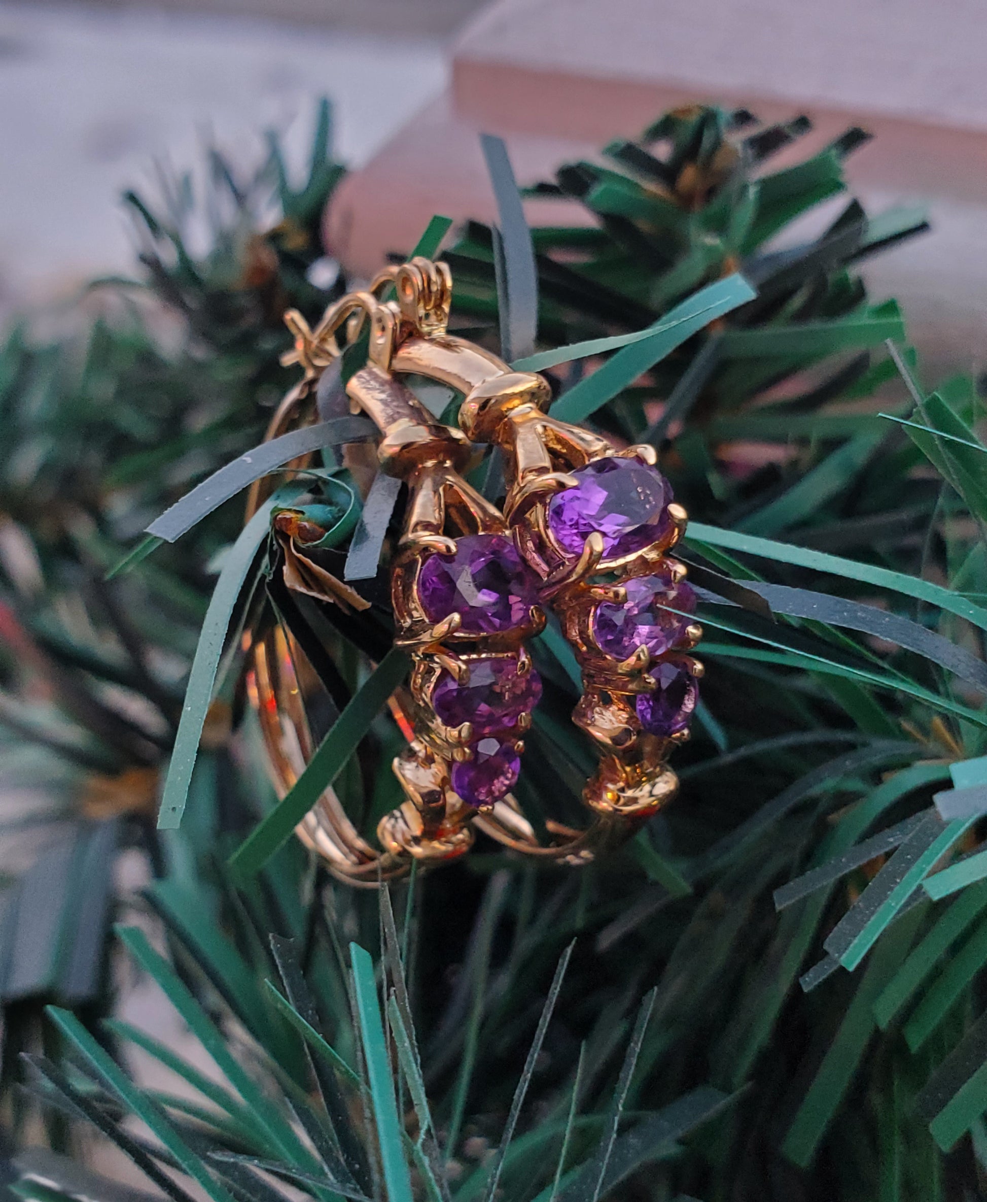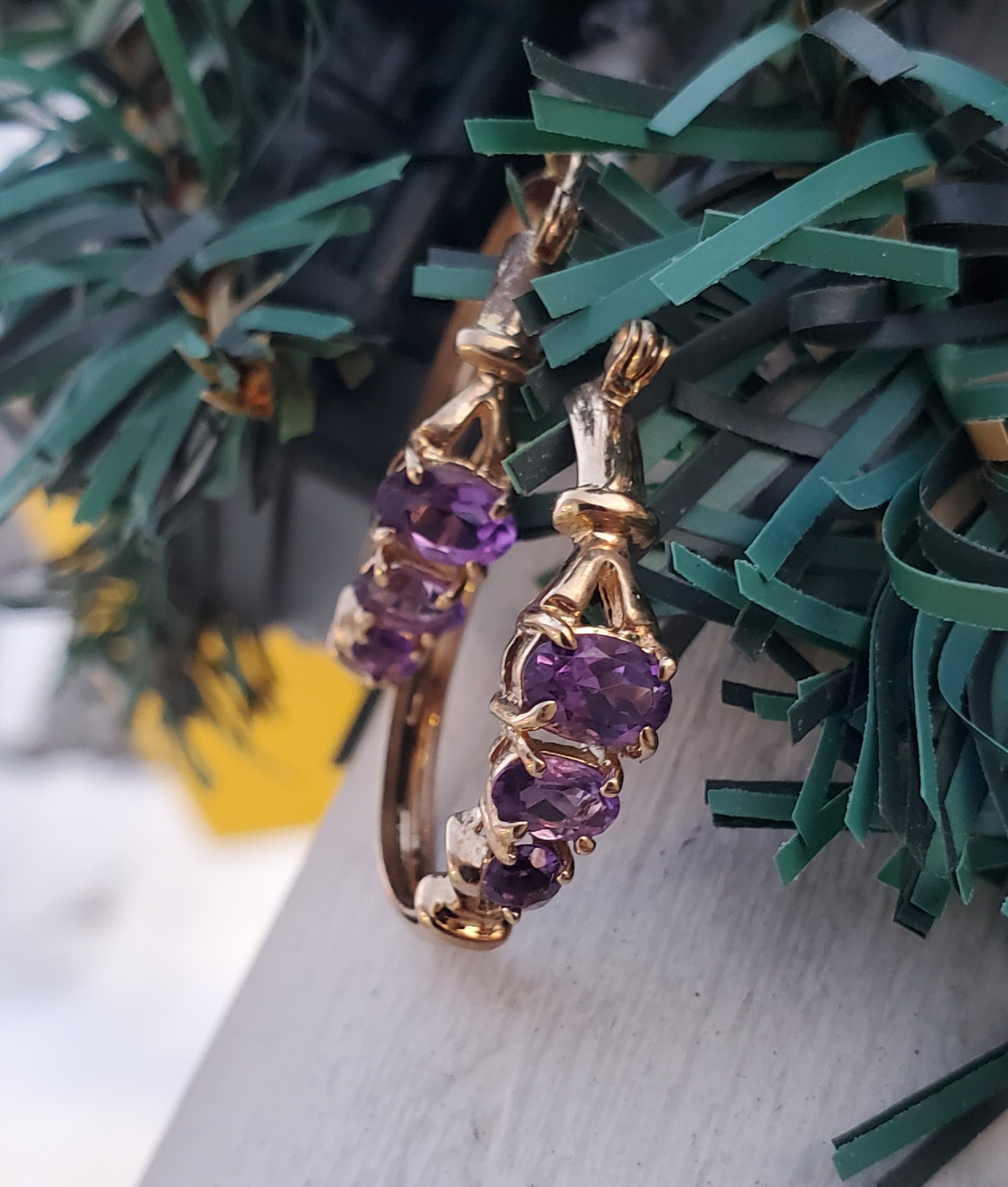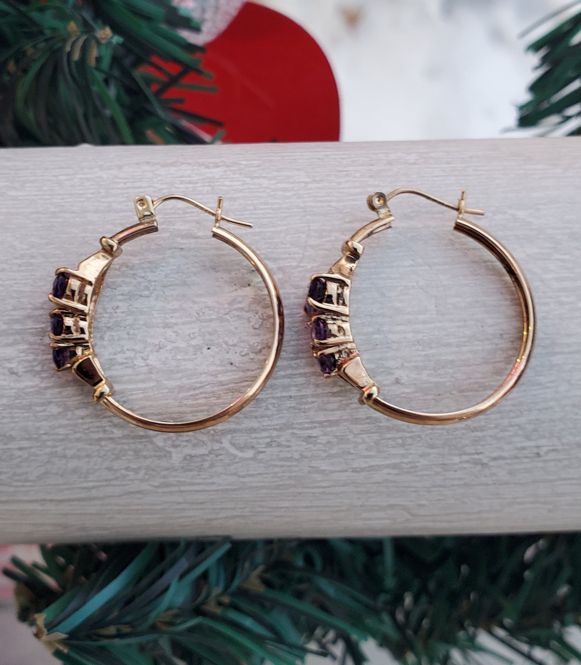 14k Solid Gold Natural Amethyst Hoop Earrings