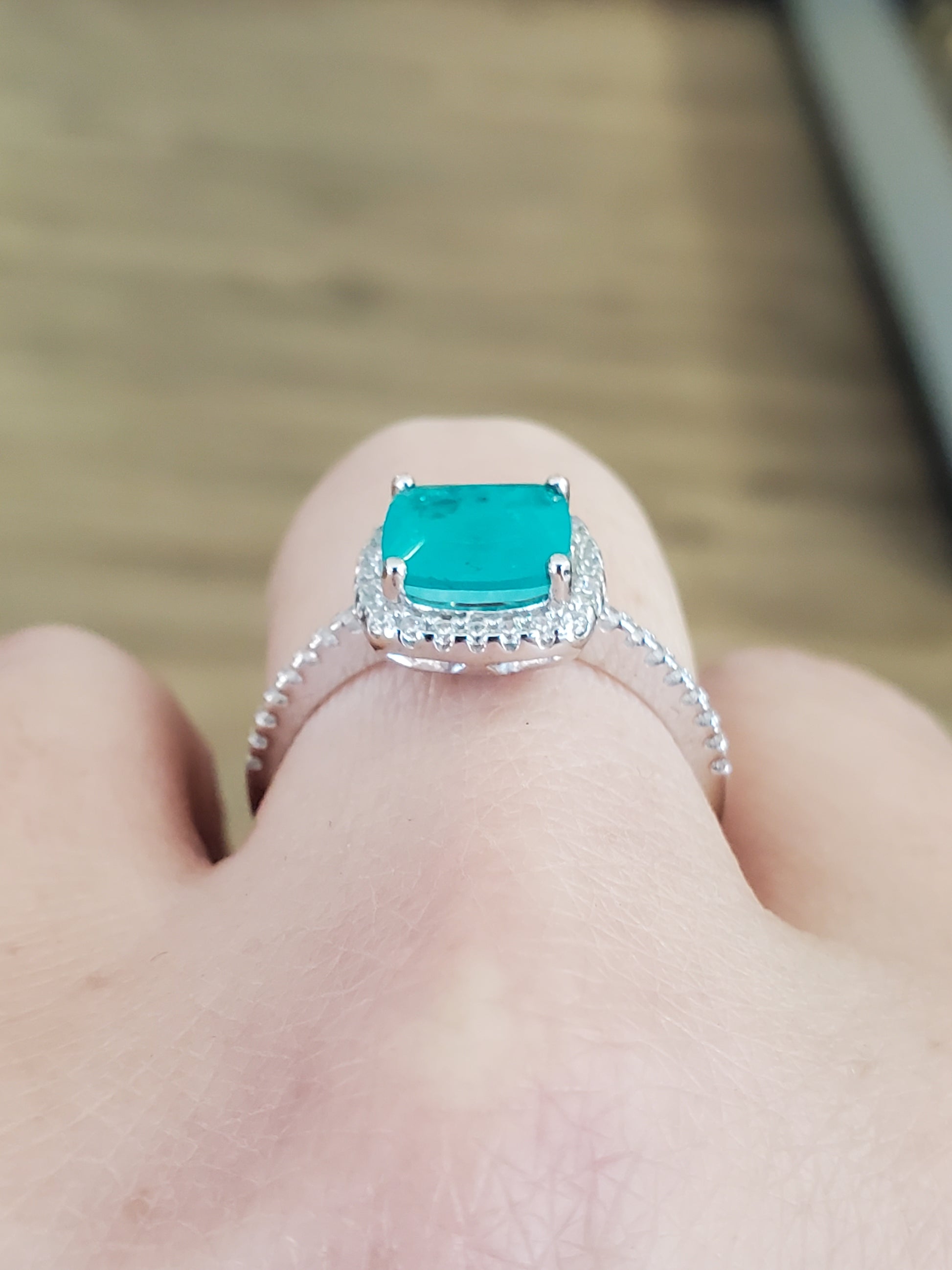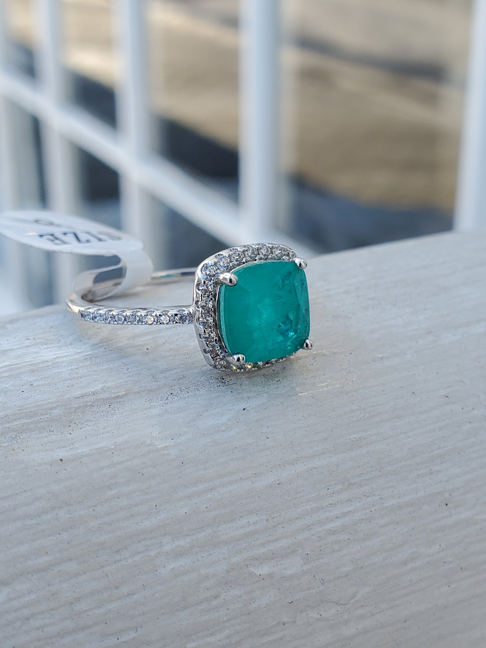Elevate your elegance with the stunning 925 Sterling Silver Halo Ring, featuring a captivating 1.00 ct lab-created cushion cut emerald surrounded by shimmering zirconia. Perfectly sized at finger size 8, this ring combines timeless beauty with modern craftsmanship, inspiring confidence and sophistication in every moment!