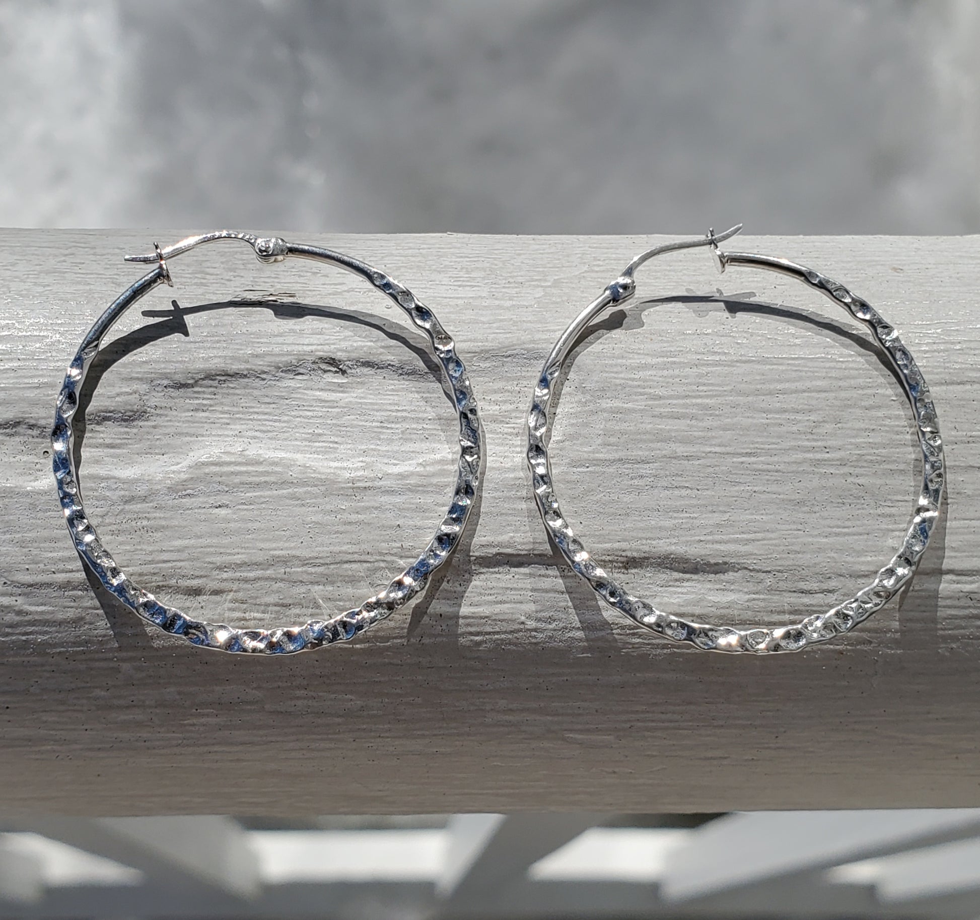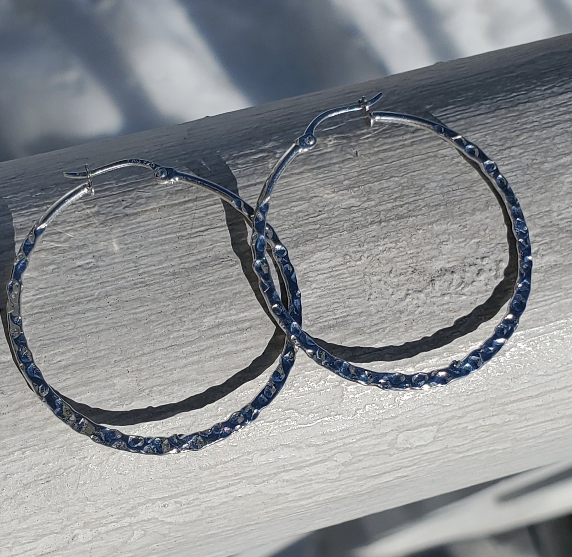 Crafted from 925 sterling silver, these lightweight hoop earrings feature a hammered design that enhances their visual appeal. Weighing only 2.9 grams, they provide comfort for extended wear while offering a durable, stylish addition to any jewelry collection.