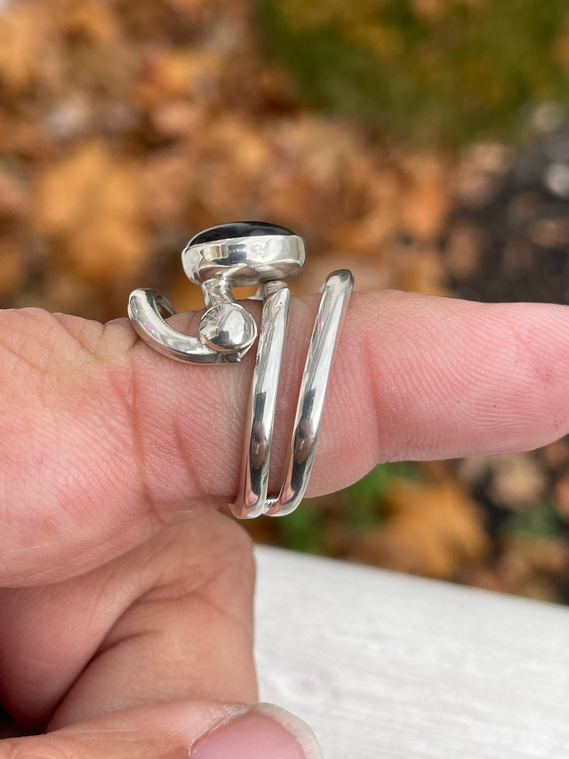 925 Sterling Silver 5.00ct Black Onyx Bypass Adjustable Ring Open Size. 8.1 grams