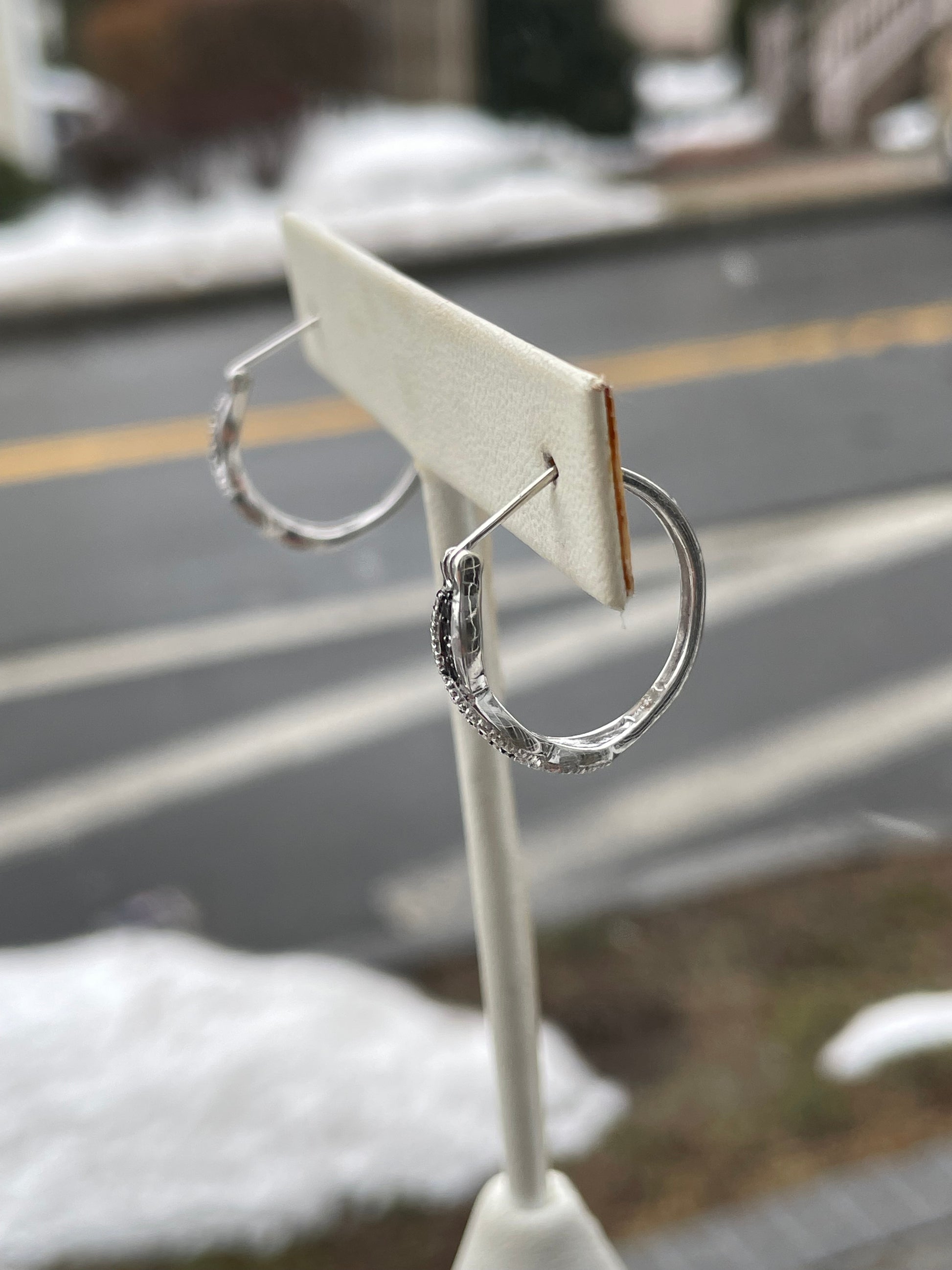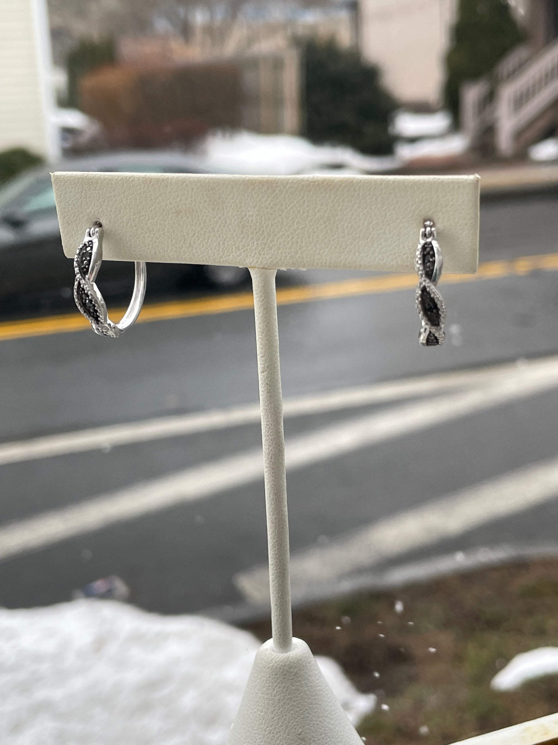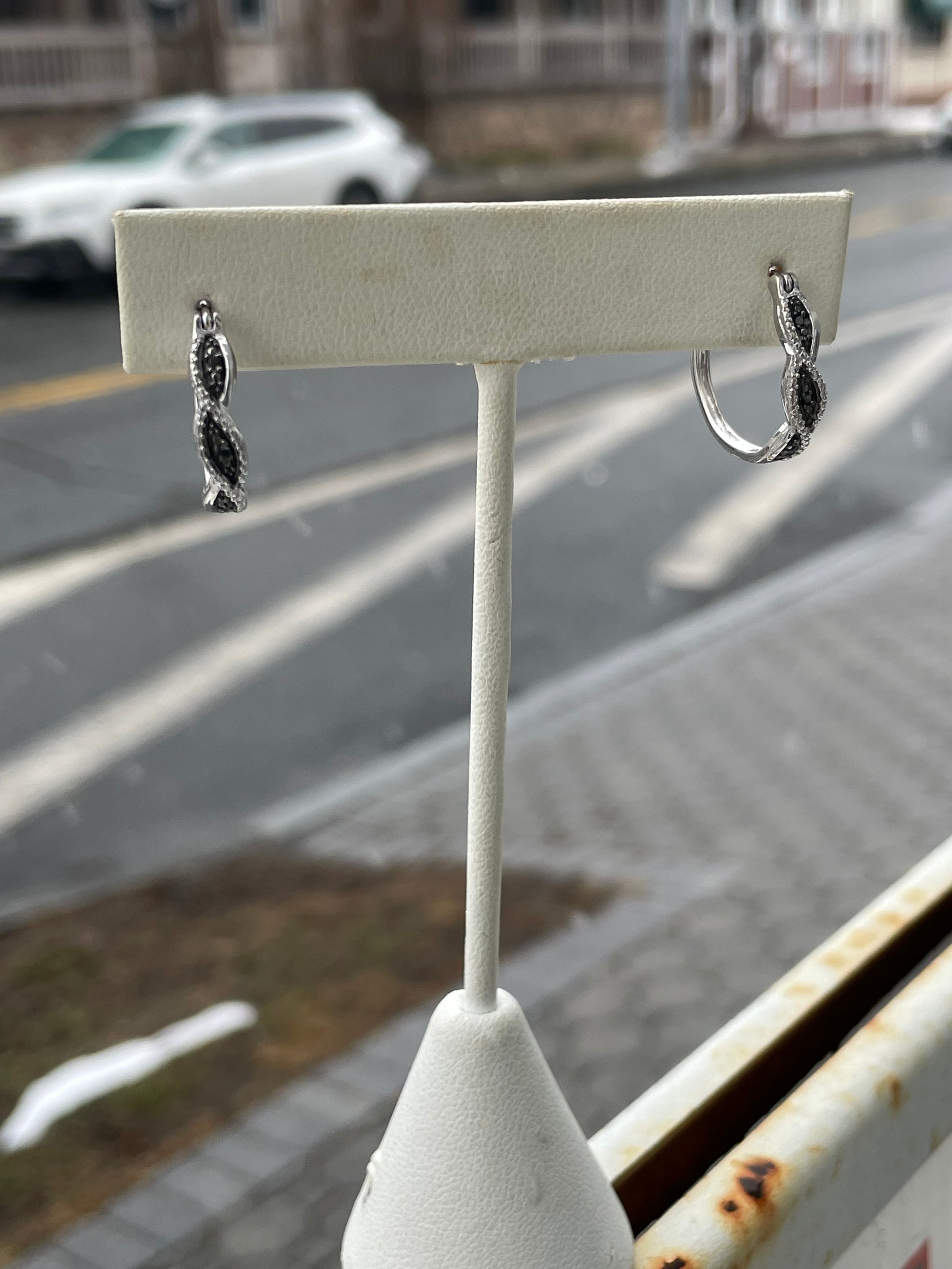925 Sterling Silver Black Diamond Infinity hoop earrings (K51) .03ct TCW. 25mm