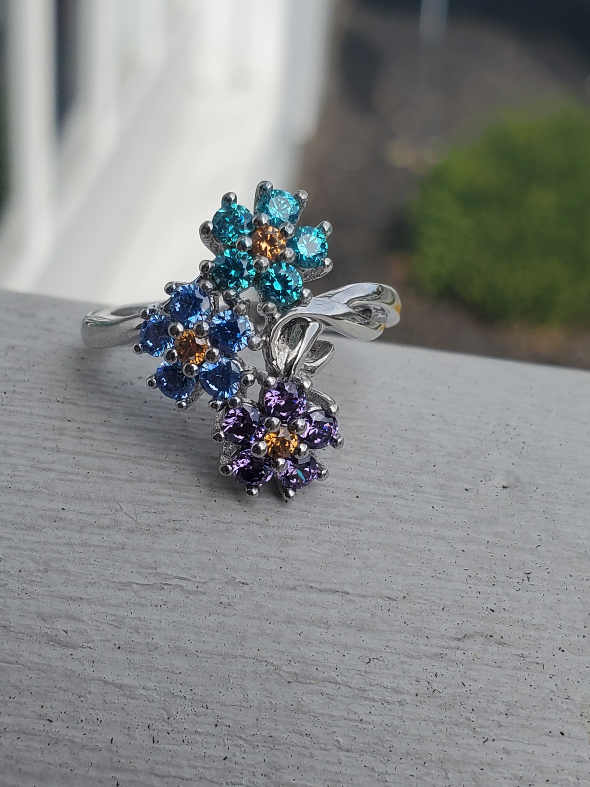 925 Sterling Silver "Boho Blossoms" Sparkling Zirconia Floral Bouquet Ring