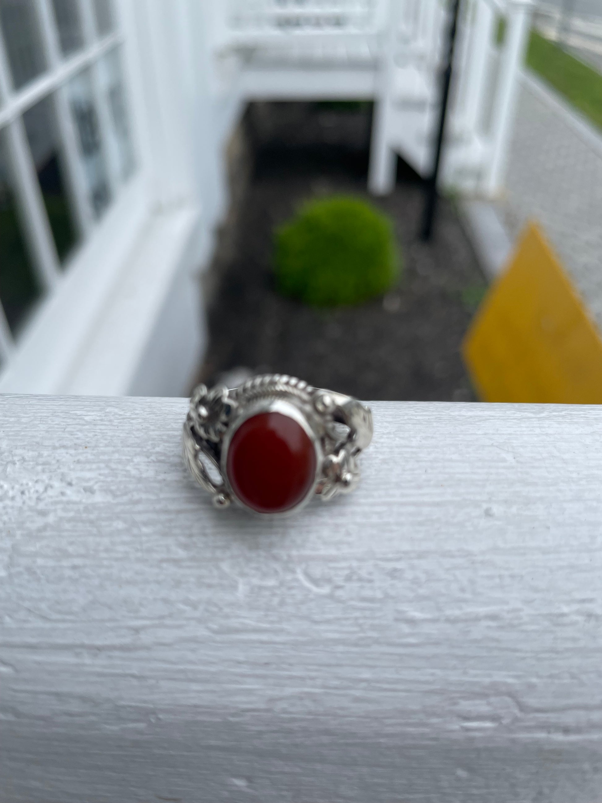 925 Sterling Silver Carnelian Solitaire Ring Nature Filigree Setting Size 7.5