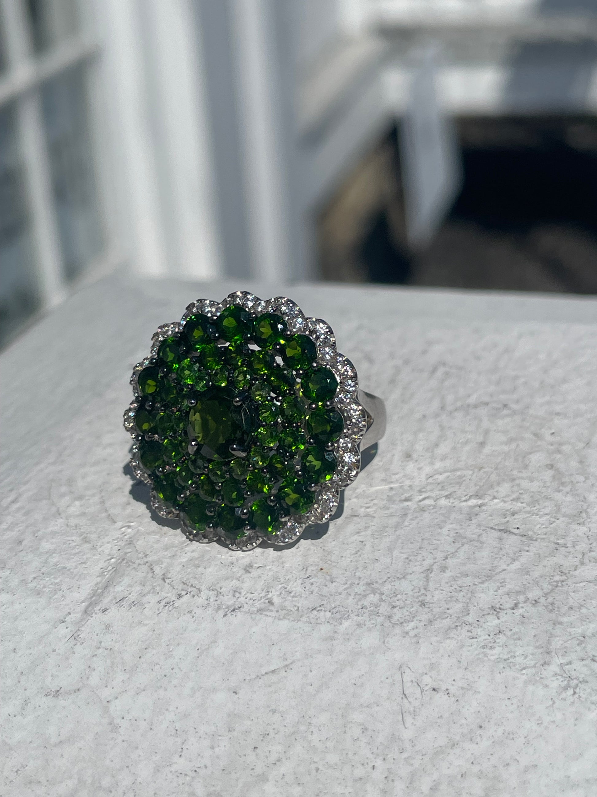 925 Sterling Silver Chrome Diopside & Cz Cluster Ring. Finger size 6. What a beautiful bouquet style ring!