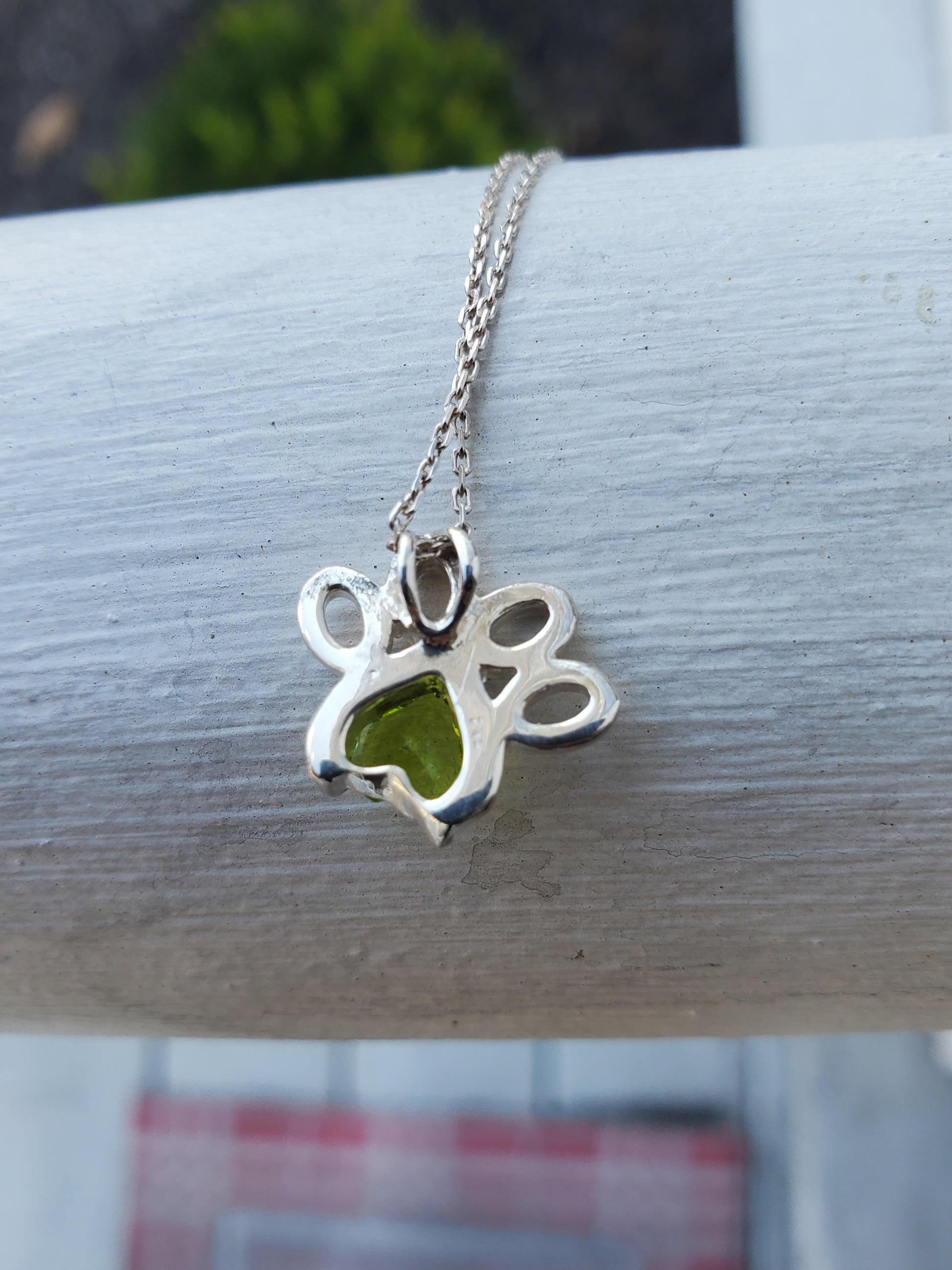 925 Sterling Silver Custom Made Simulated Peridot Pet Pawprint Necklace