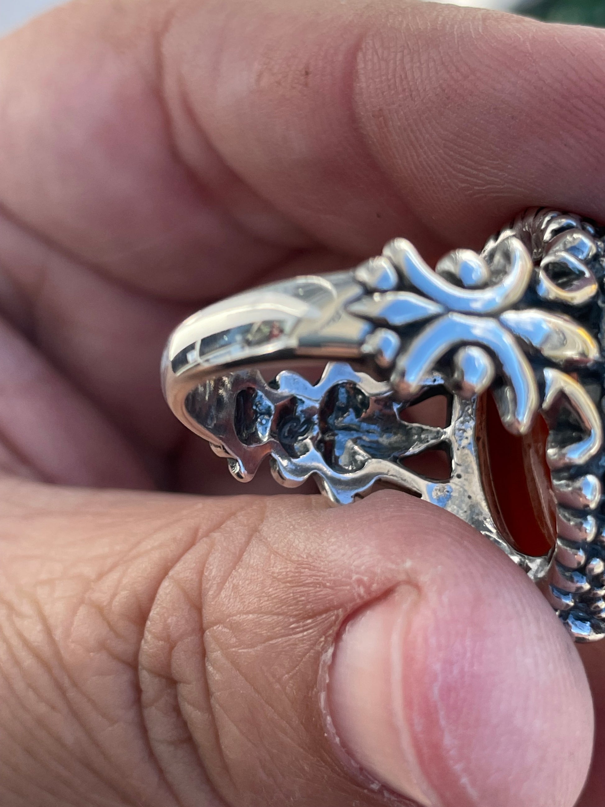 925 Sterling Silver Designer Carolyn Pollack Large Cameo Ring Size 10. (13.7 grams) Cameo is made from shell. The setting is a Carolyn pollack setting, the cameo belonged to me. I hand set it in this ring so it’s definitely a one of a kind piece.