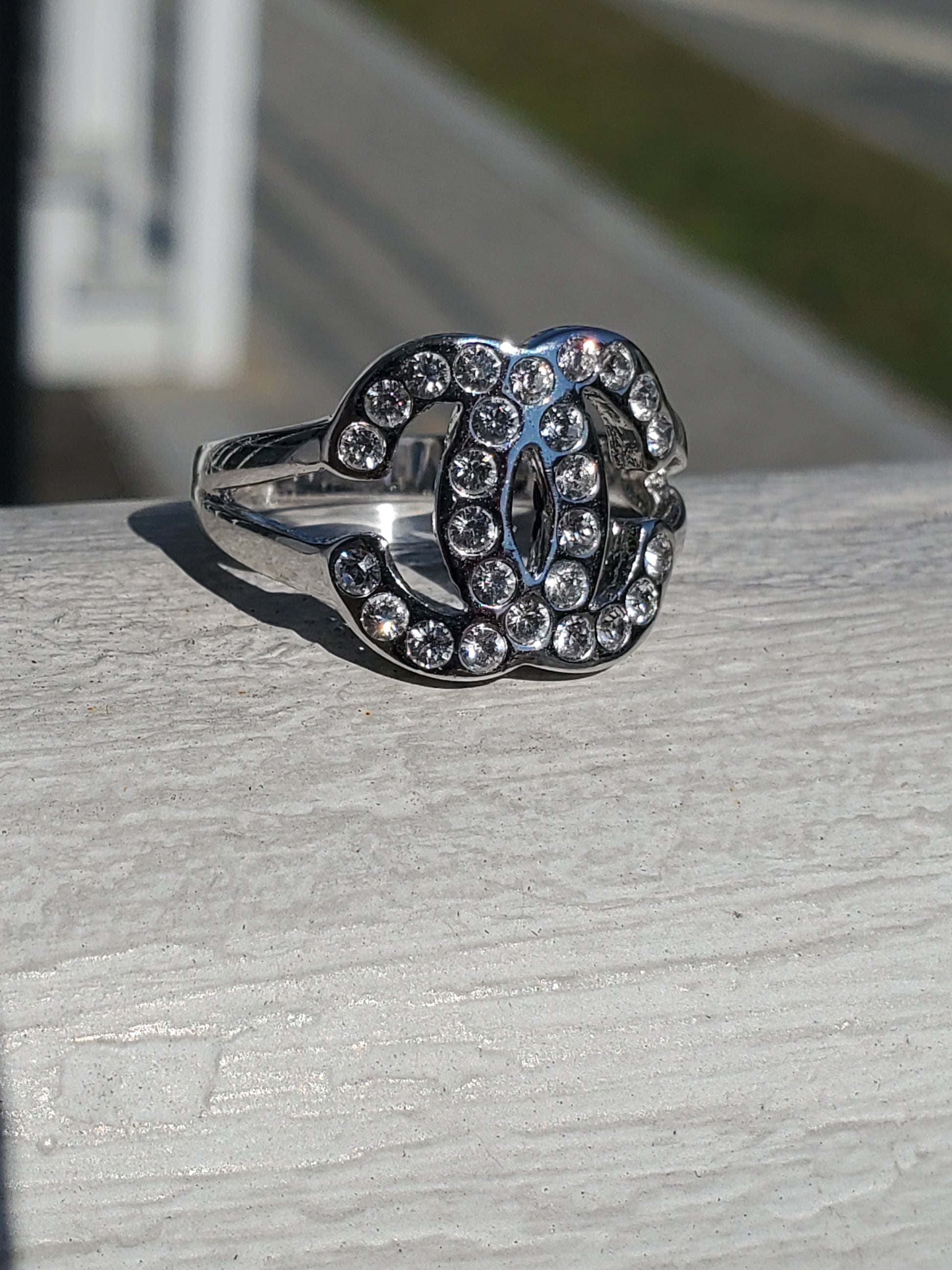 925 Sterling Silver Designer Inspired CC Logo Zirconia Ring