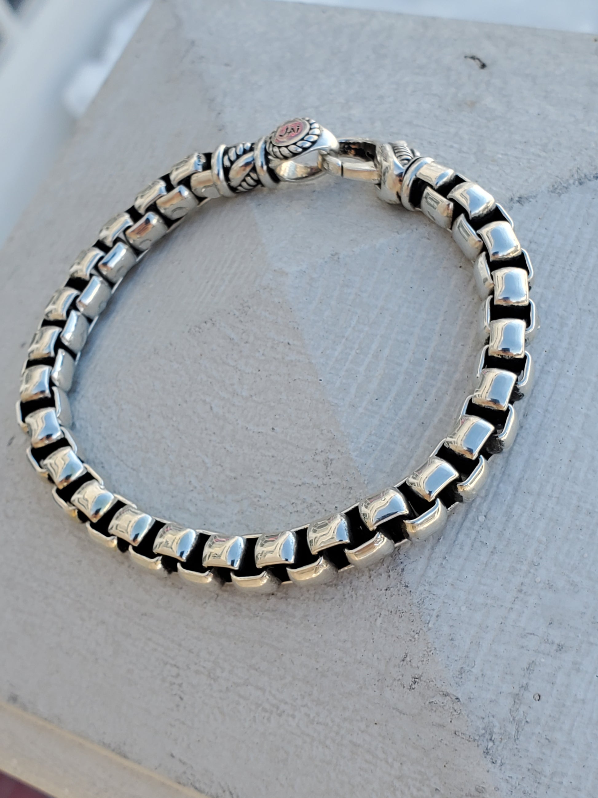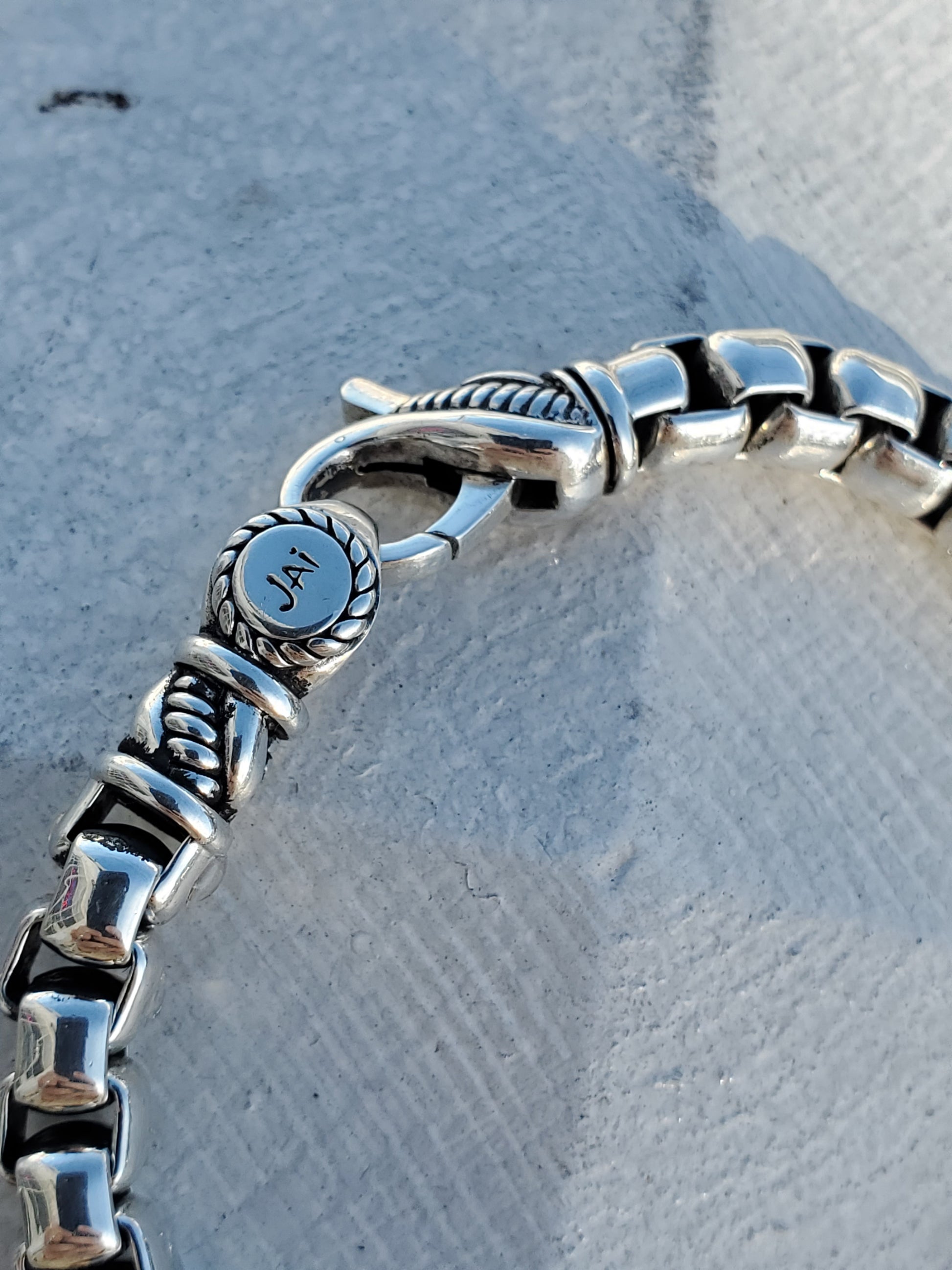 925 Sterling Silver Designer JAI John Hardy 7mm Rounded Box Chain Cable Bracelet