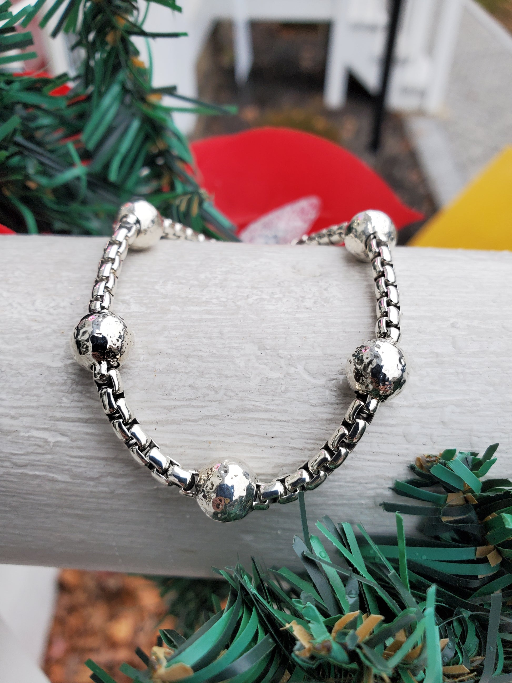 925 Sterling Silver Designer John Hardy JAI Hammered Design Beaded Cable Link Chain Bracelet