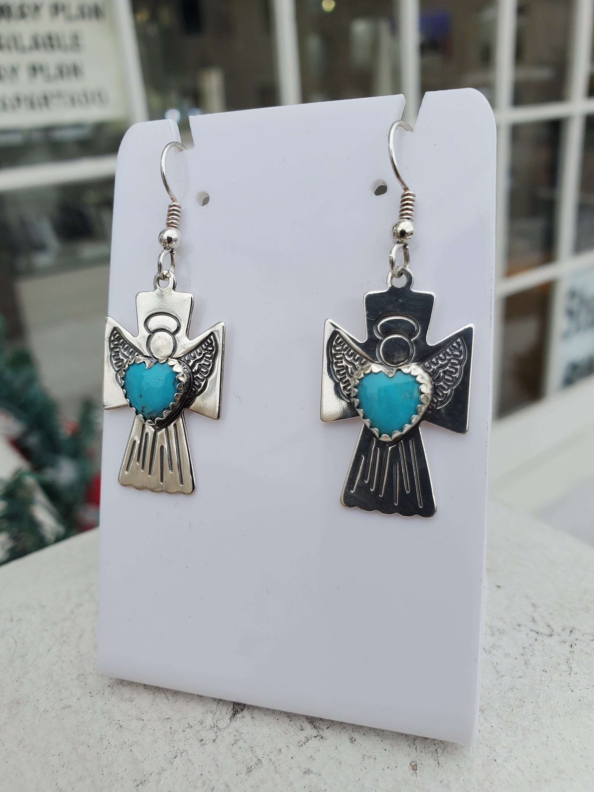925 Sterling Silver Designer Roderick Tenorio Carolyn Pollock Turquoise Angel Dangle Earrings