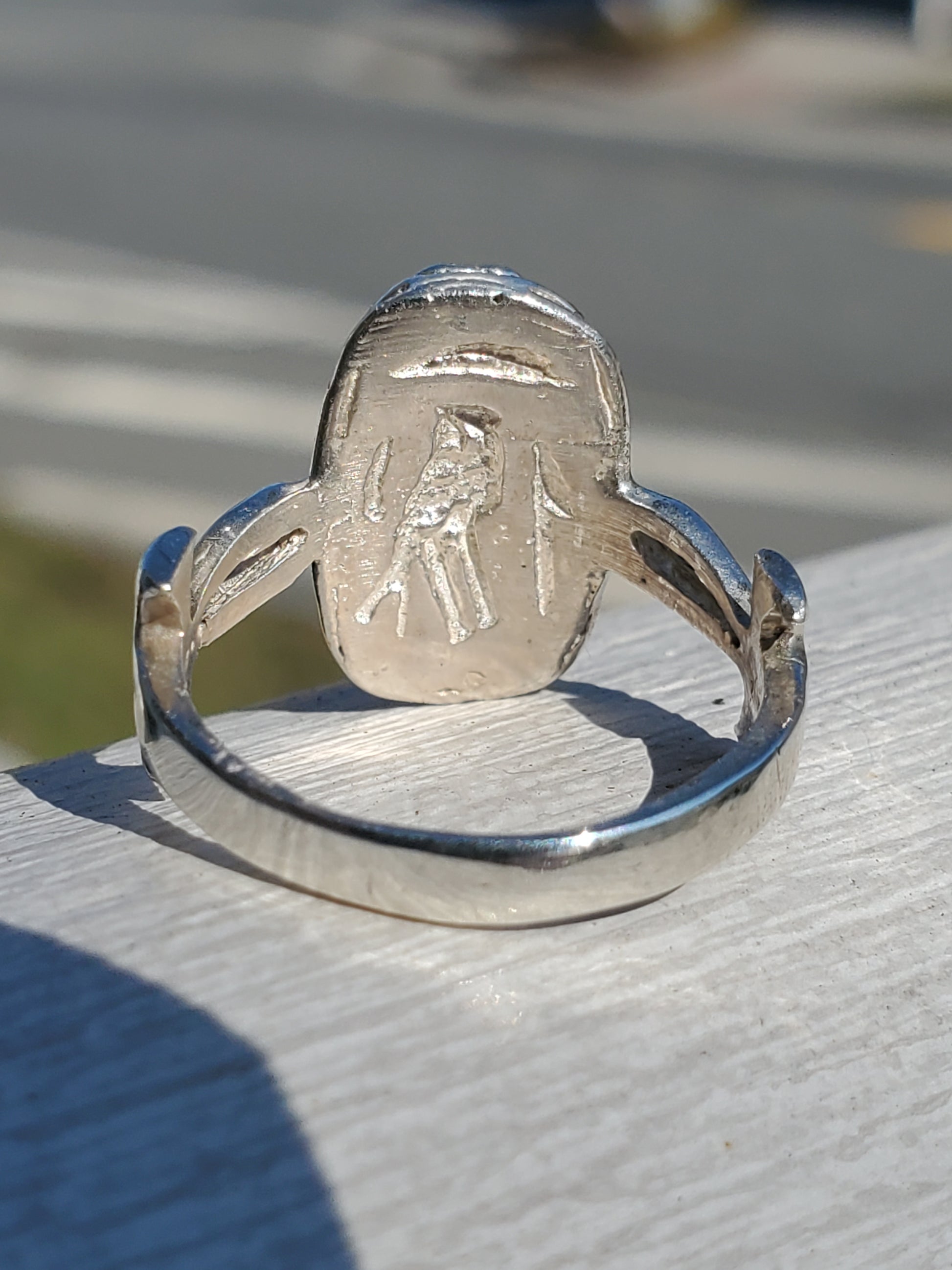 925 Sterling Silver Egyptian Scarab Onk Ankh Hieroglyphics Ring