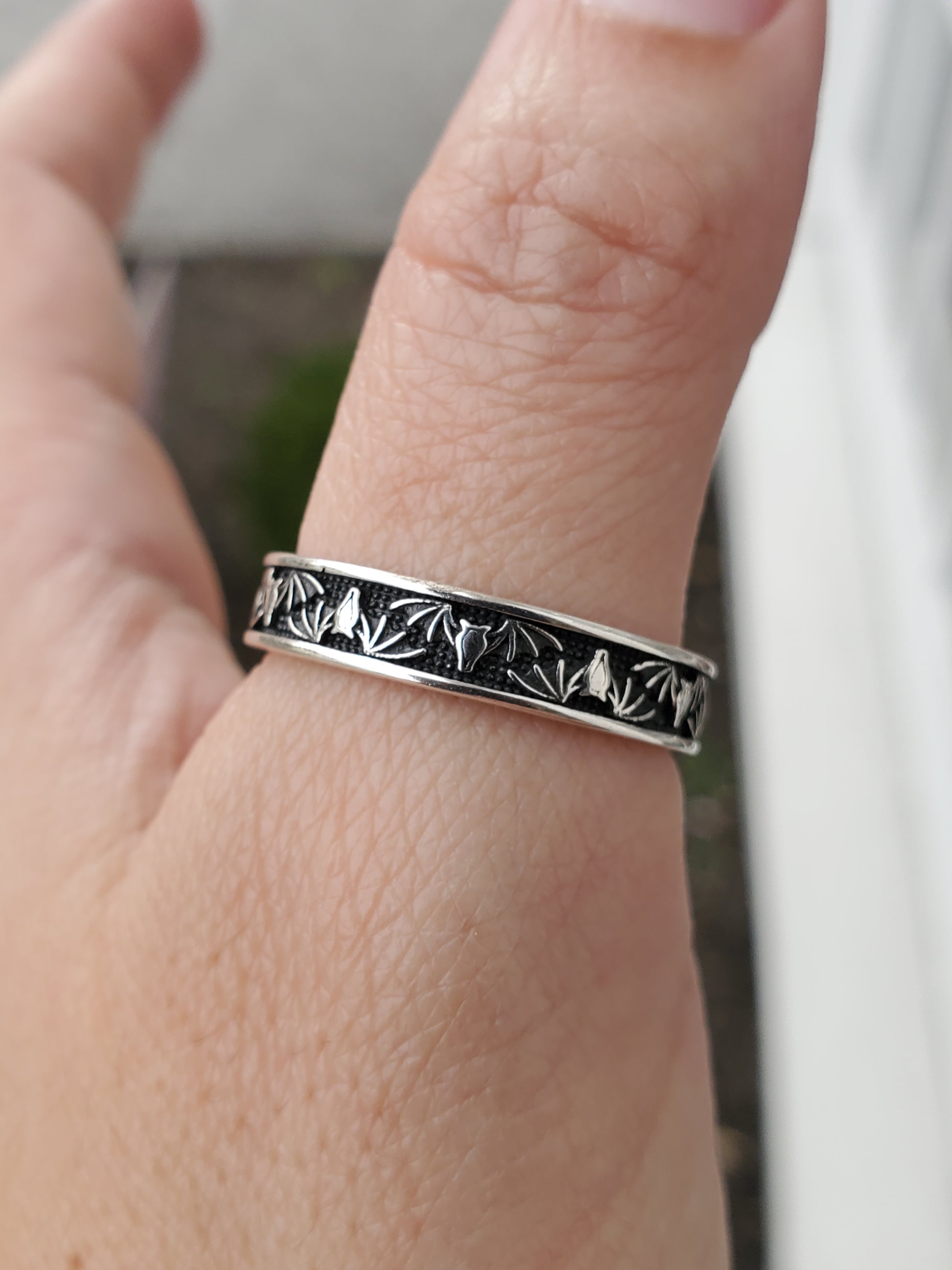 925 Sterling Silver Halloween Bats Oxydized Eternity Band Ring