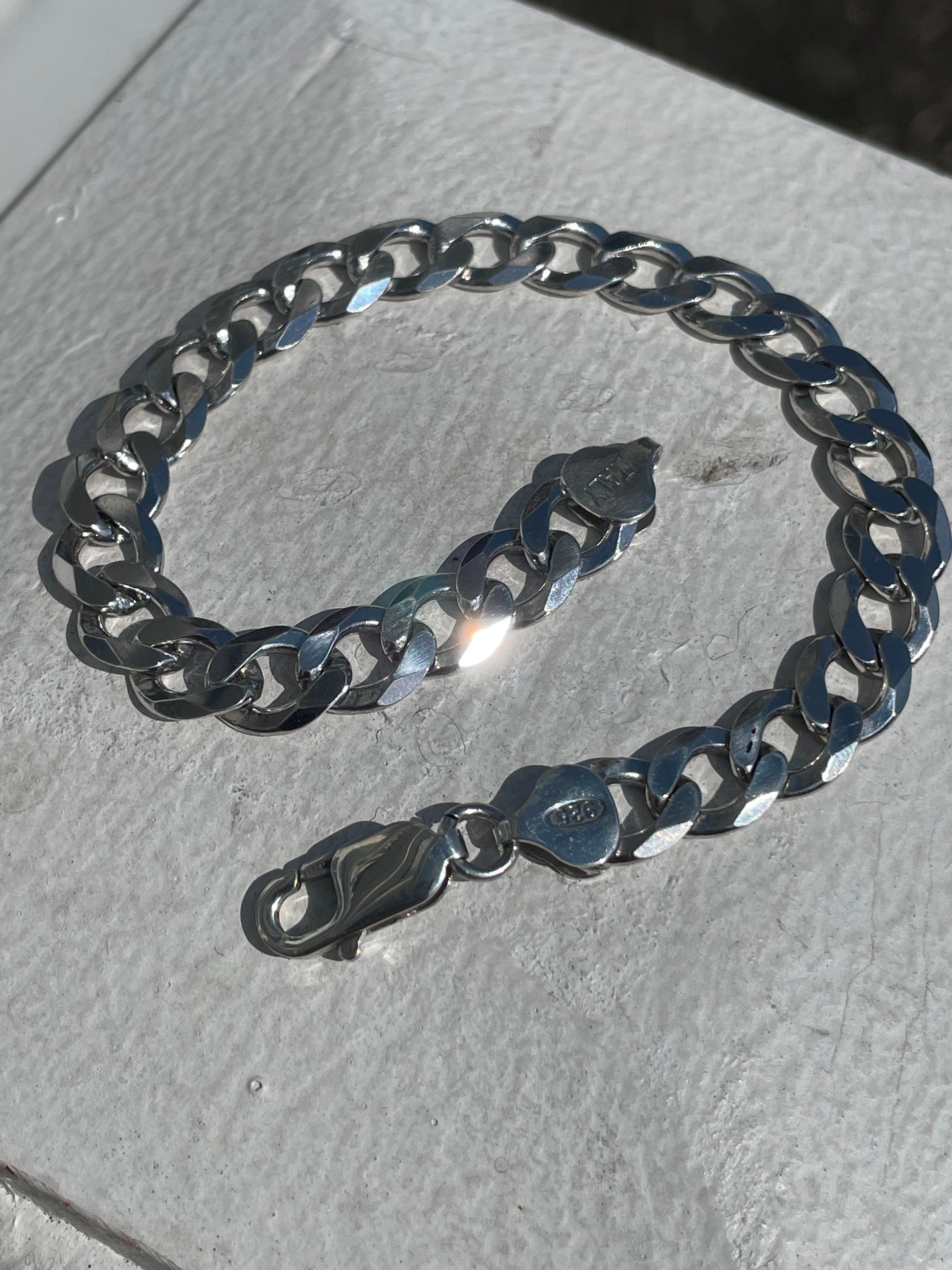 925 Sterling Silver Heavy Cuban Link Bracelet 8.75”