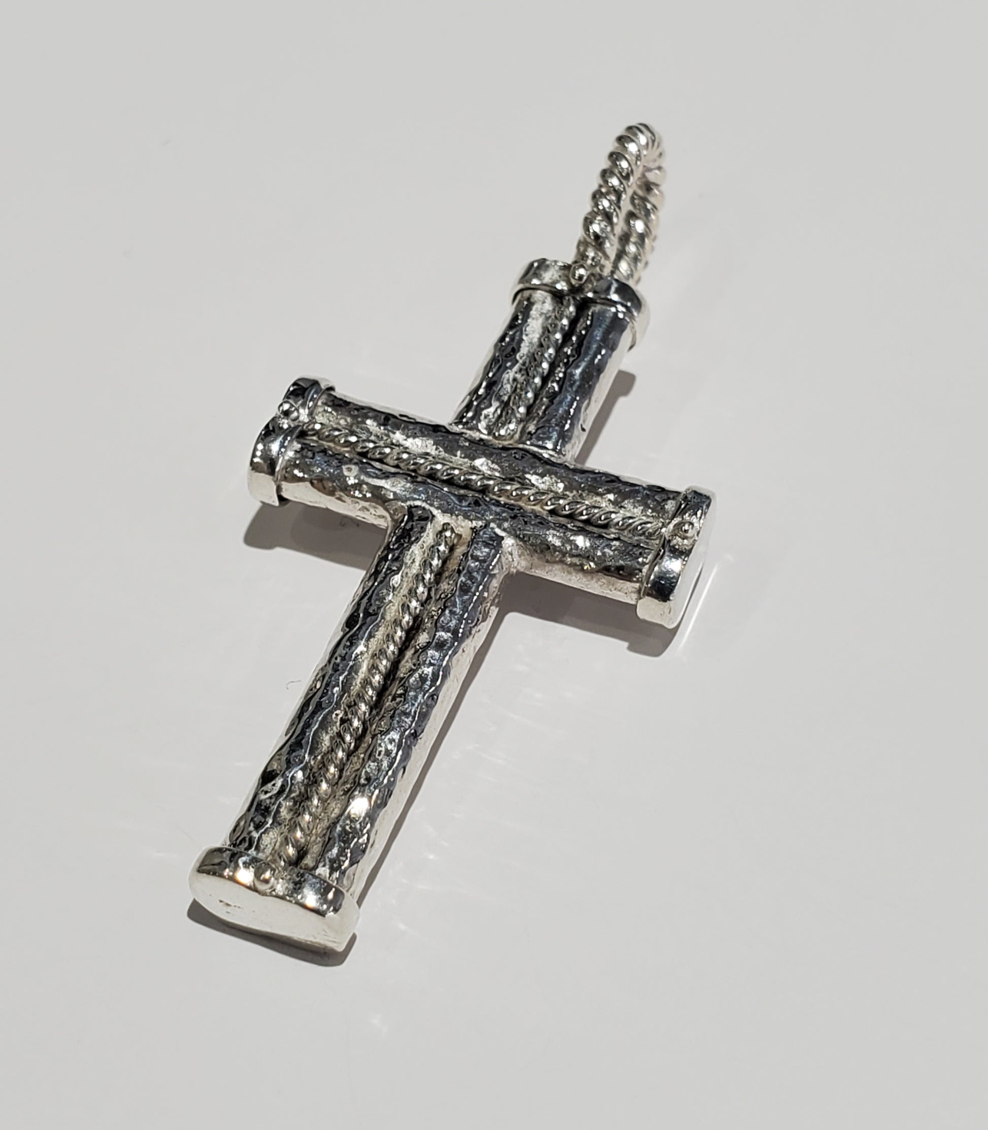 Elevate your style with the stunning 925 Sterling Silver Konstantine Industrial Cross Charm Pendant. Weighing 11.2 grams and featuring striking dimensions of 2" x 8/10", this pendant embodies strength and elegance. Wear it as a testament to your individuality and passion, igniting inspiration wherever you go!