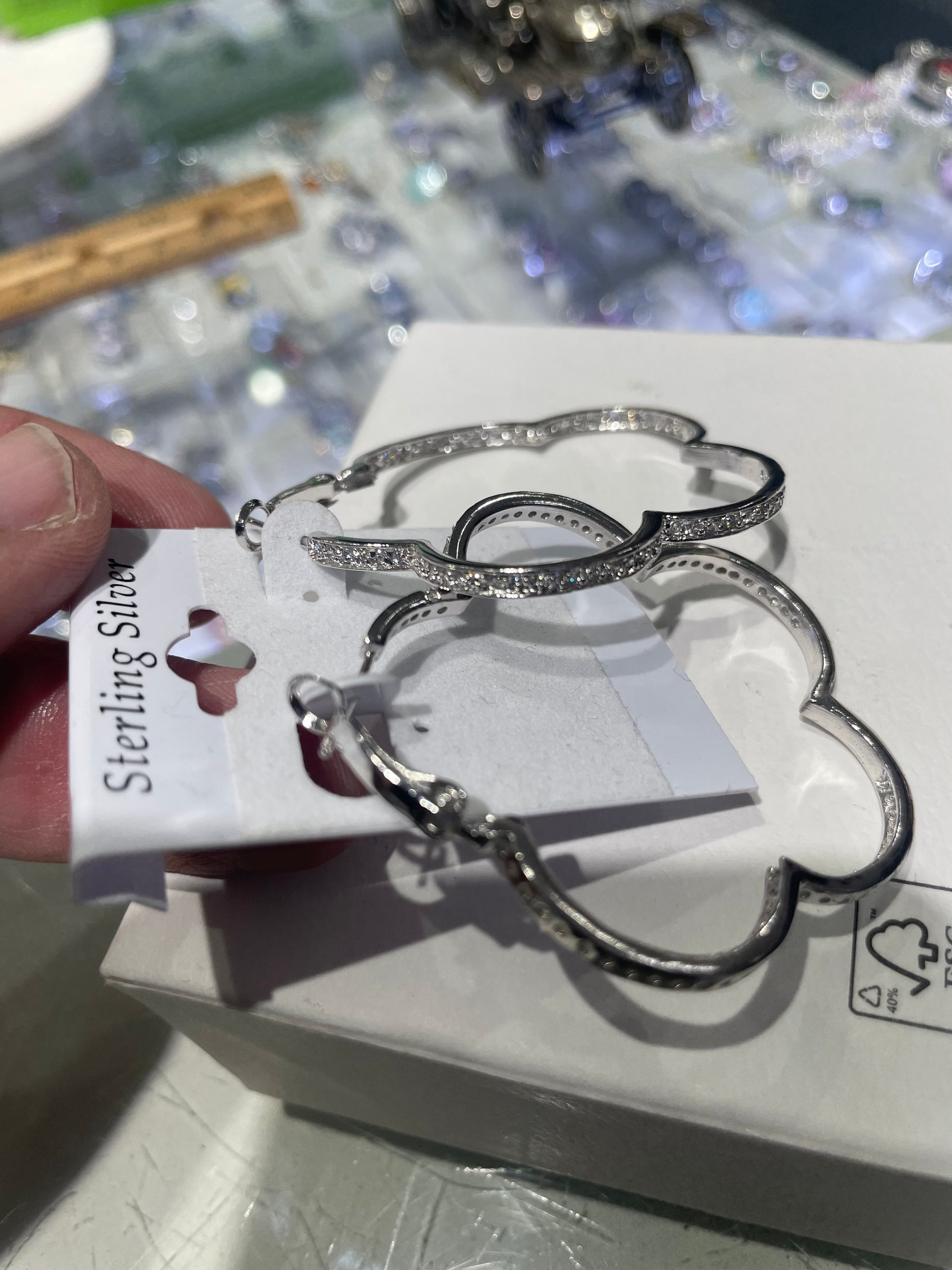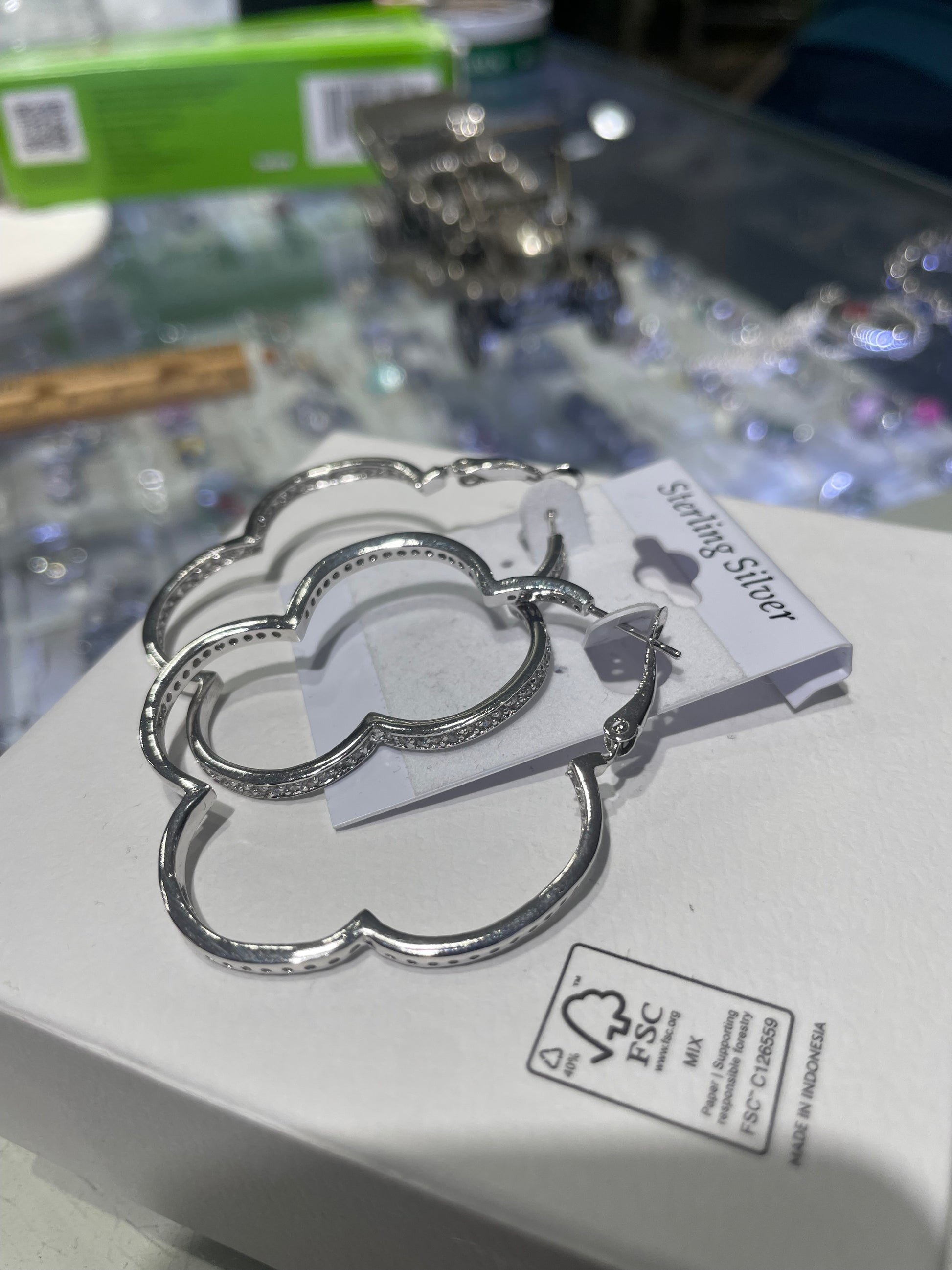 925 Sterling Silver Large Flower Cz Hoop Earrings. 2” from end to end.
