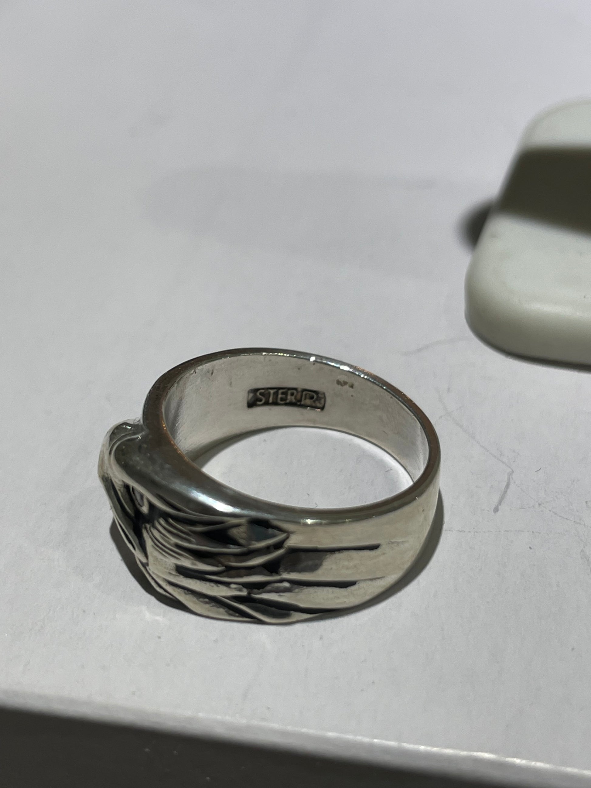 925 Sterling Silver Majestic Eagle Band Ring with Diamond Eye Size 6.5 (6.9 grams) (.02ct diamond eye)