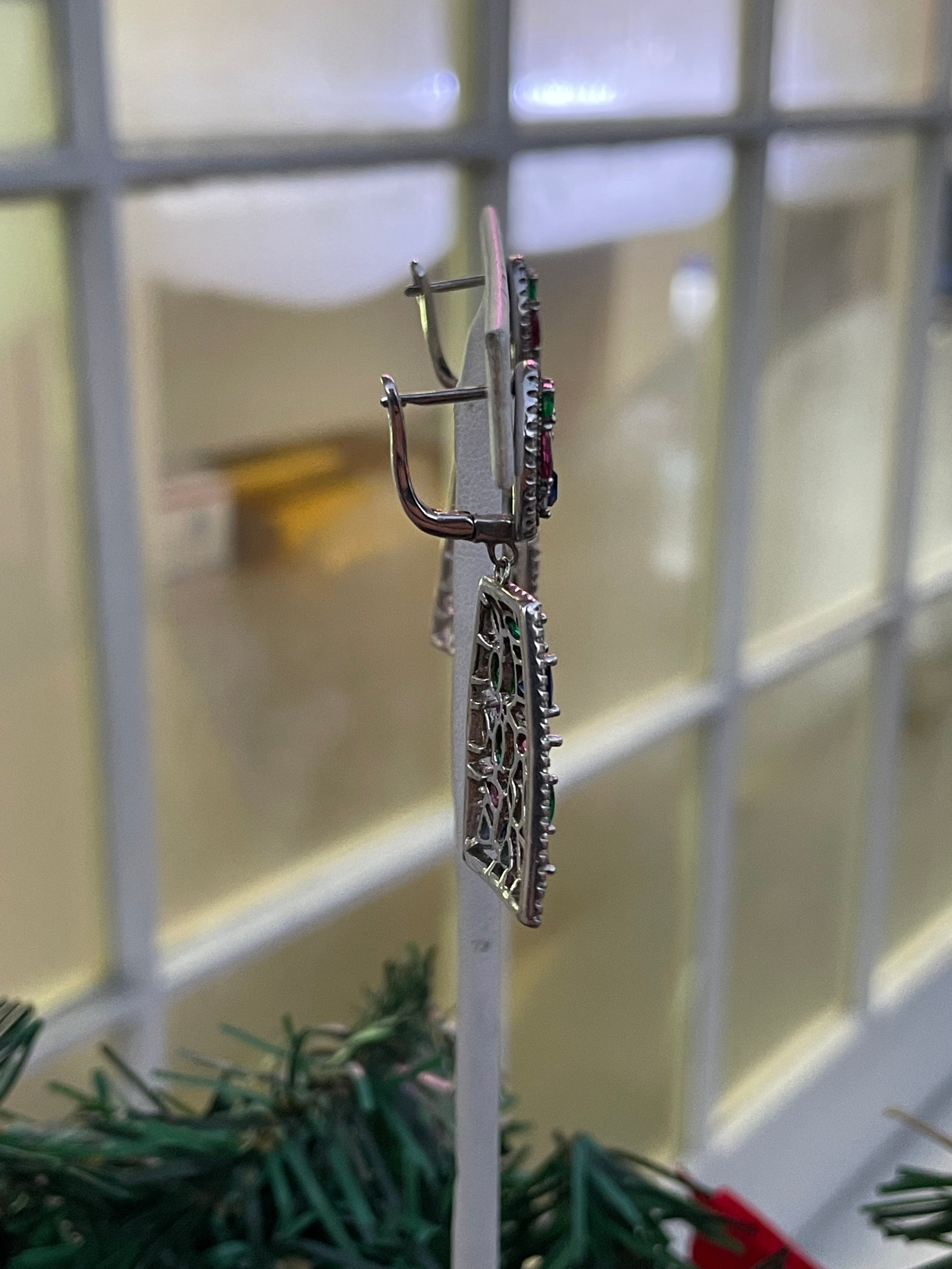 925 Sterling Silver Multi Colored Stone Modernist Dangle Earrings. 10 grams. 1.75”x.75”