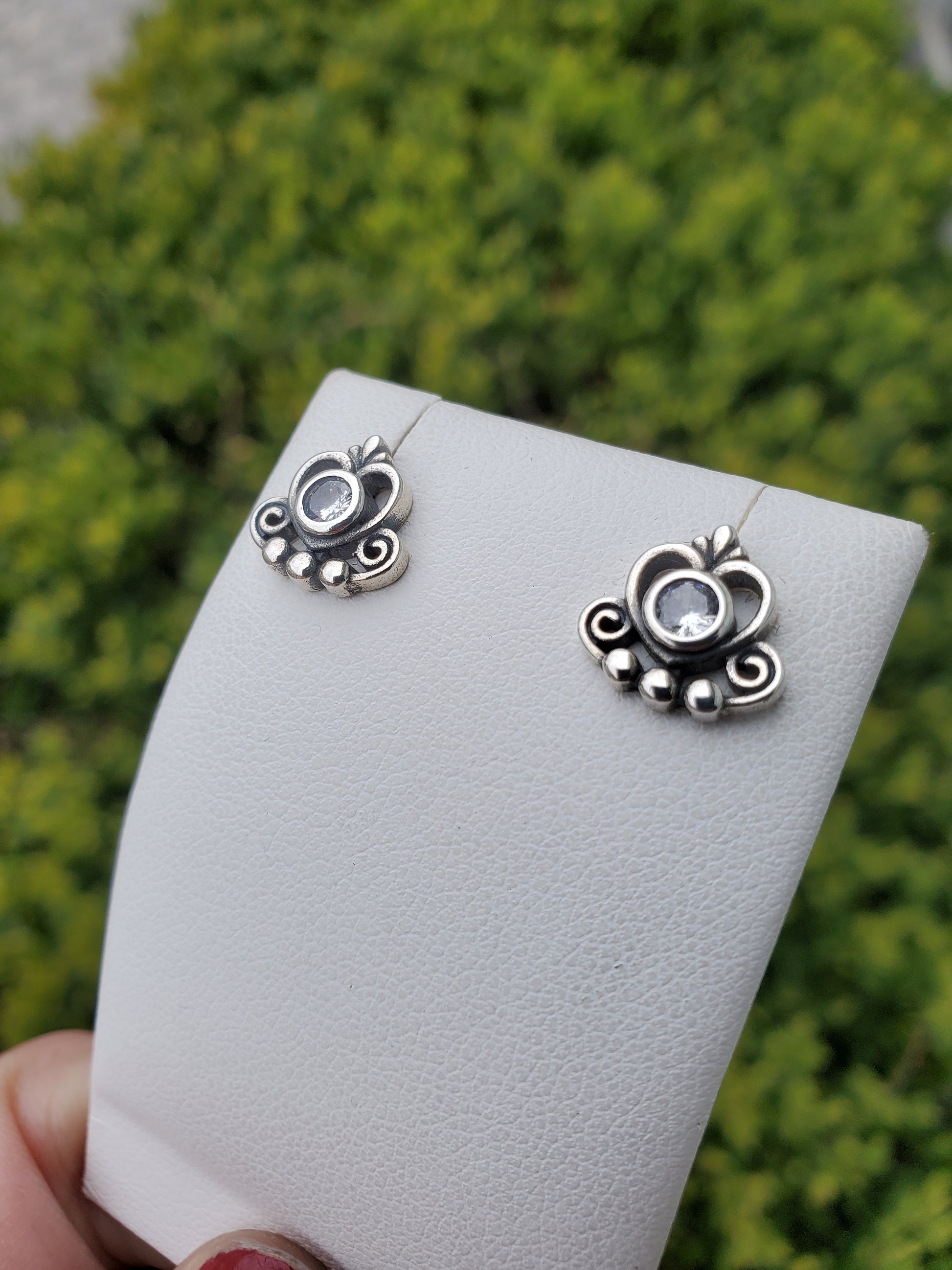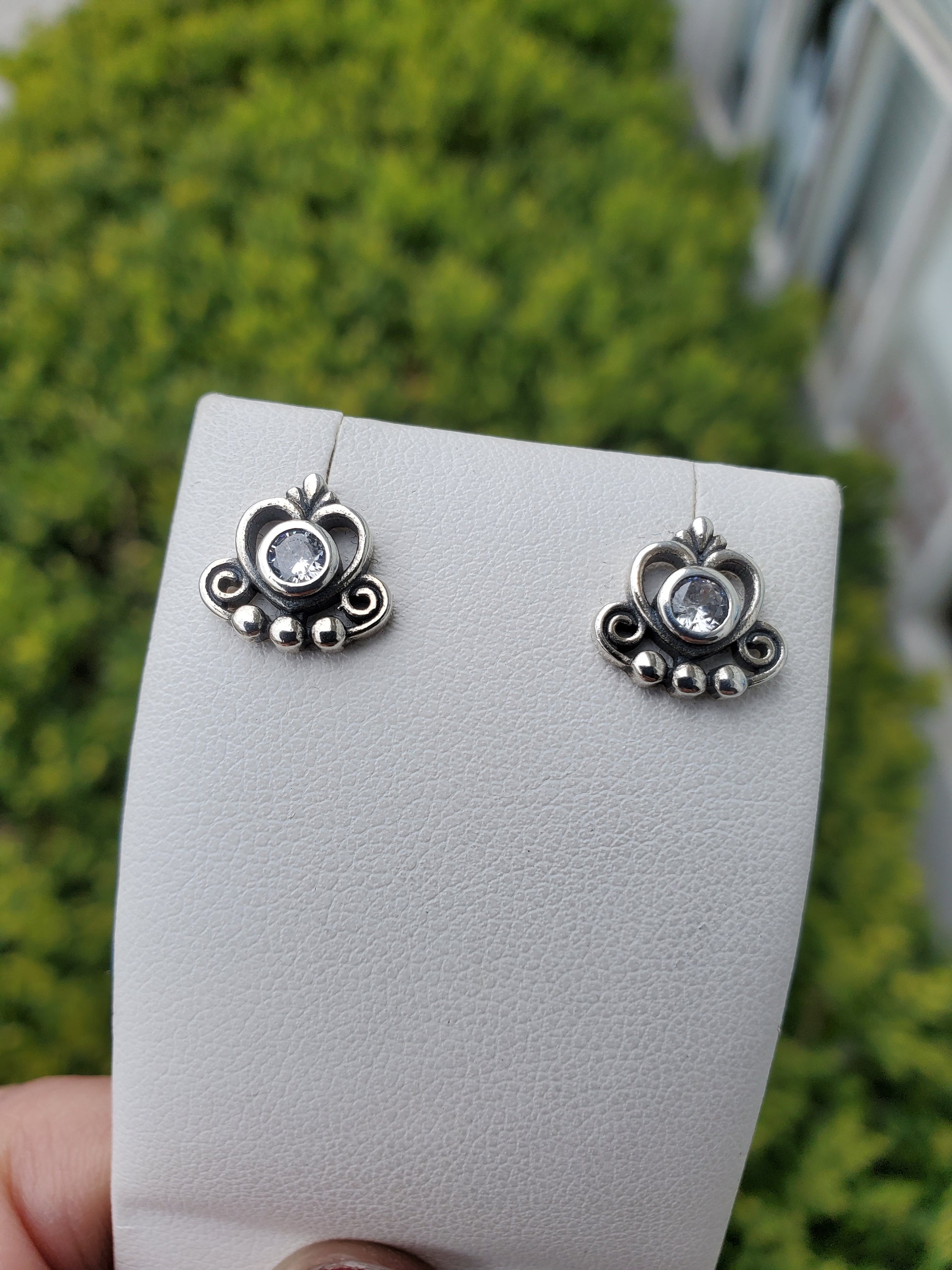 925 Sterling Silver "My Princess" Tiara Crown Heart Zirconia Stud Earrings. Butterfly pushbacks.