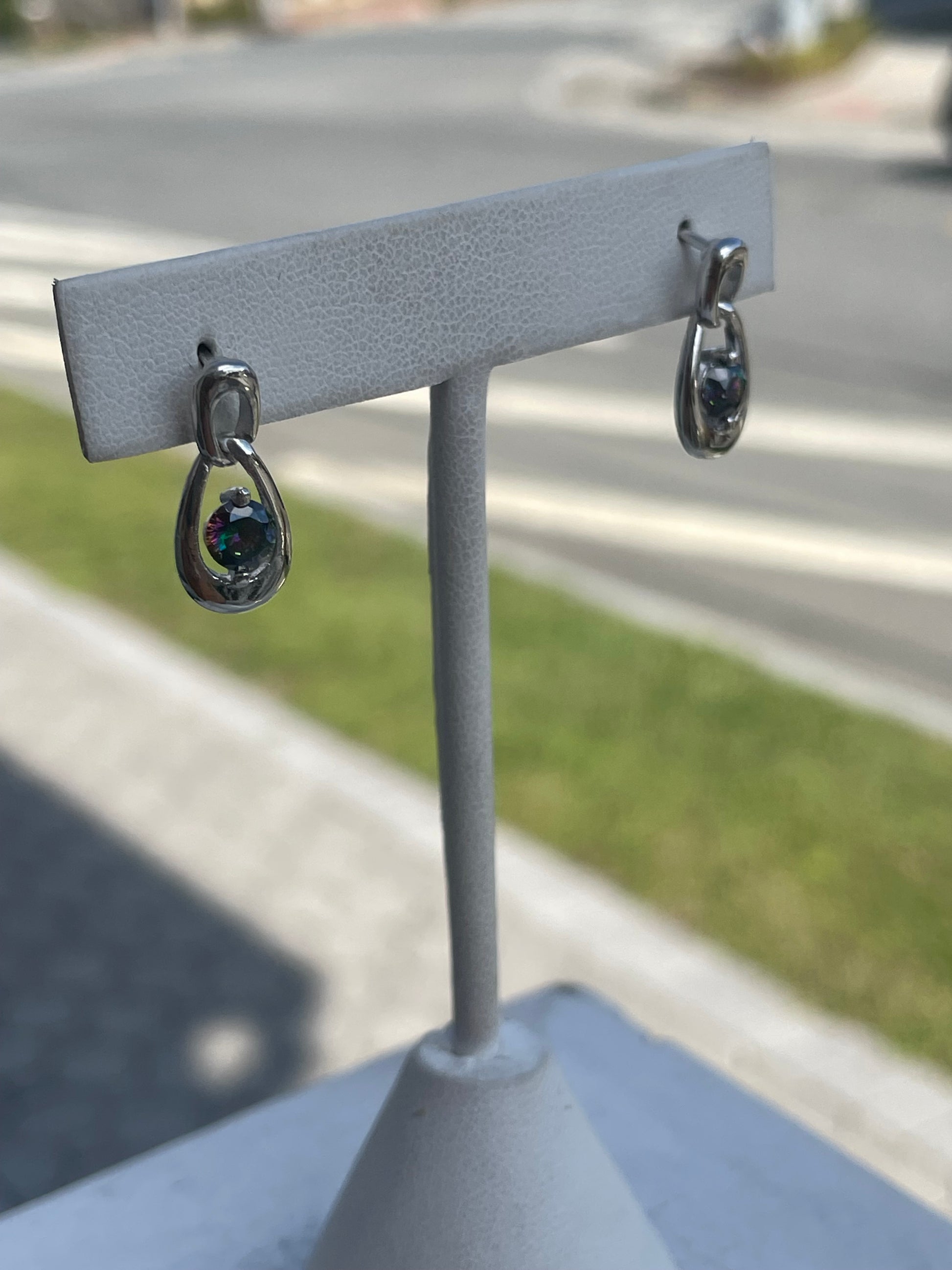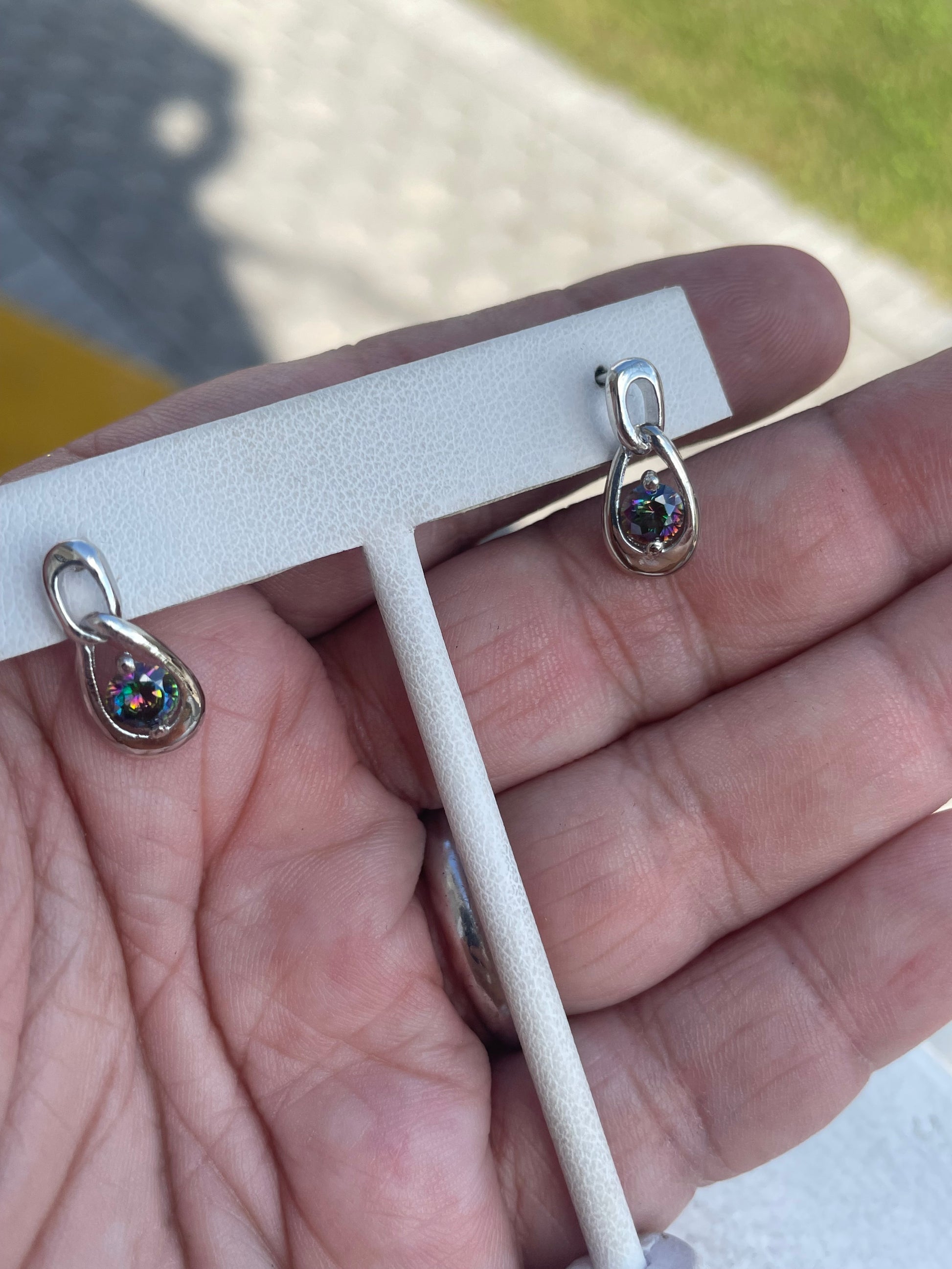 925 Sterling Silver Mystic Topaz Mini Drop Earrings. .60” drop. Butterfly pushbacks