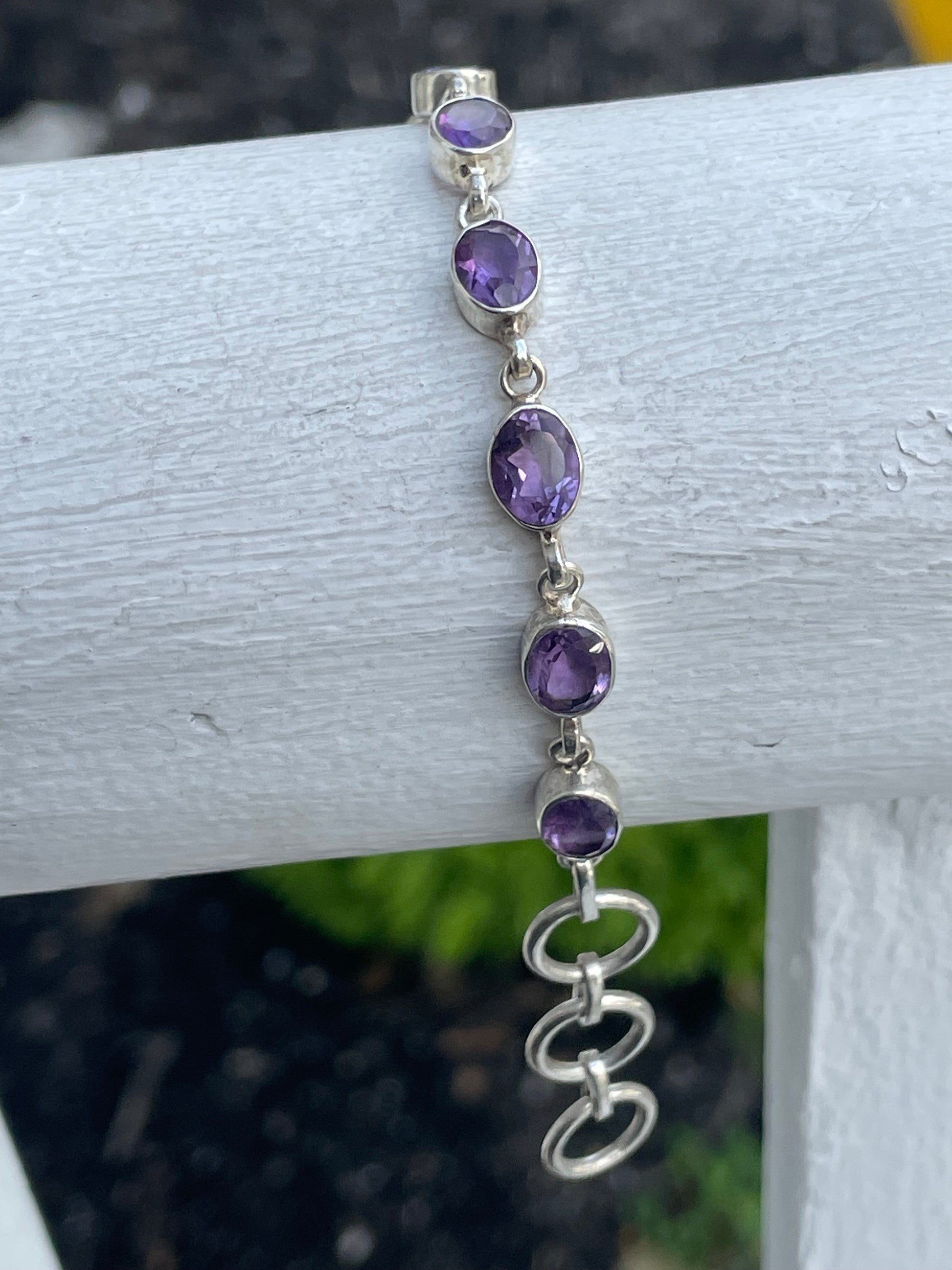 925 Sterling Silver Natural Amethyst Tennis Bracelet 7.5”
