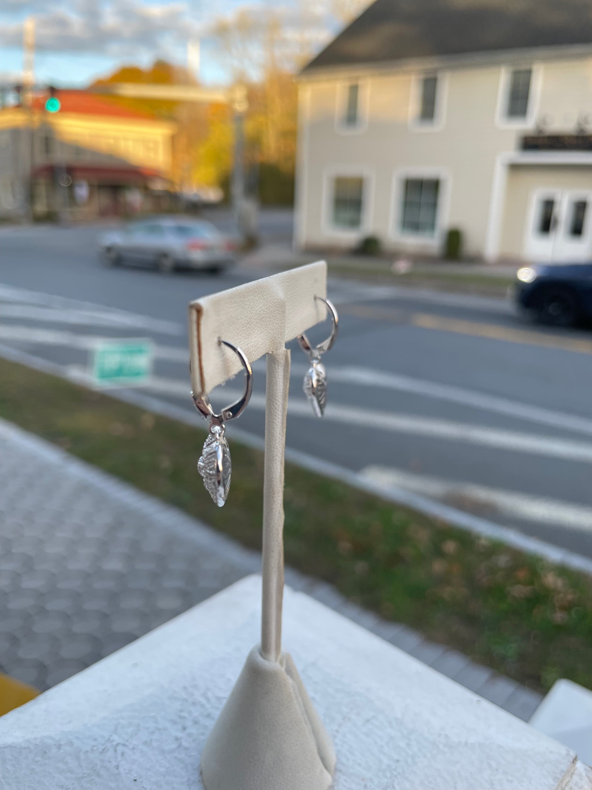 925 Sterling Silver Natural Diamond Dangle Heart Earrings