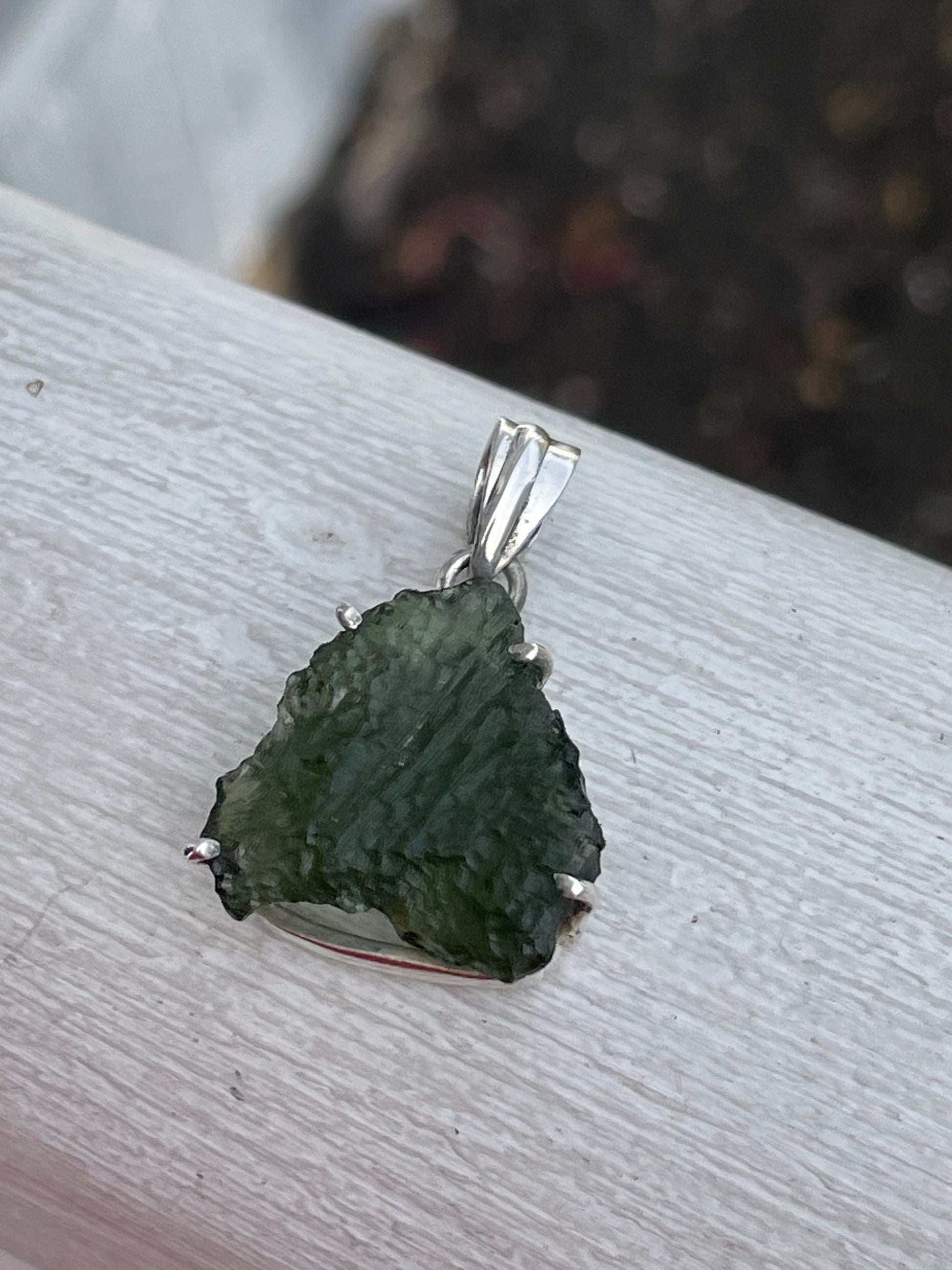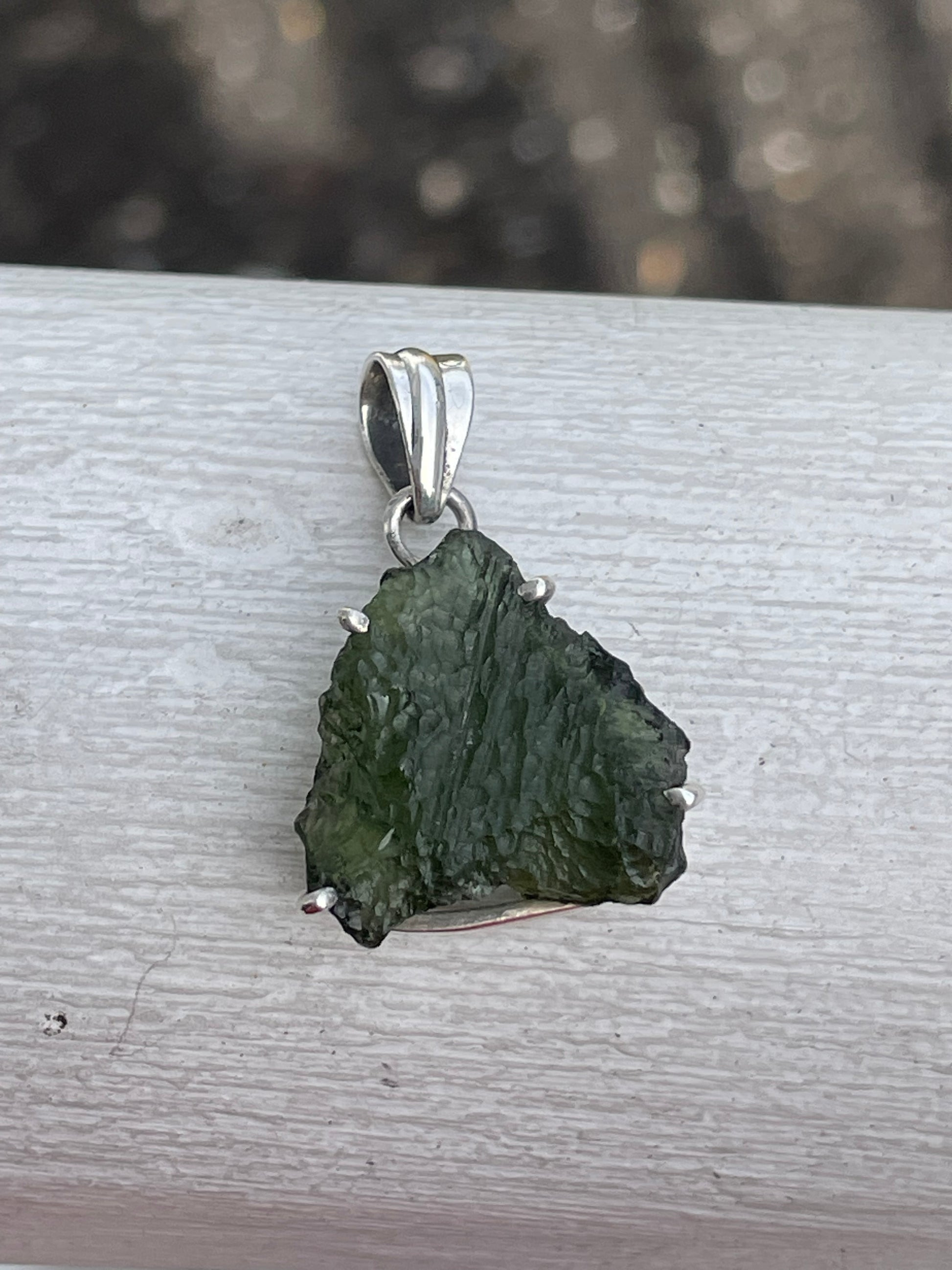 925 Sterling Silver Natural Moldavite Stone Pendant.