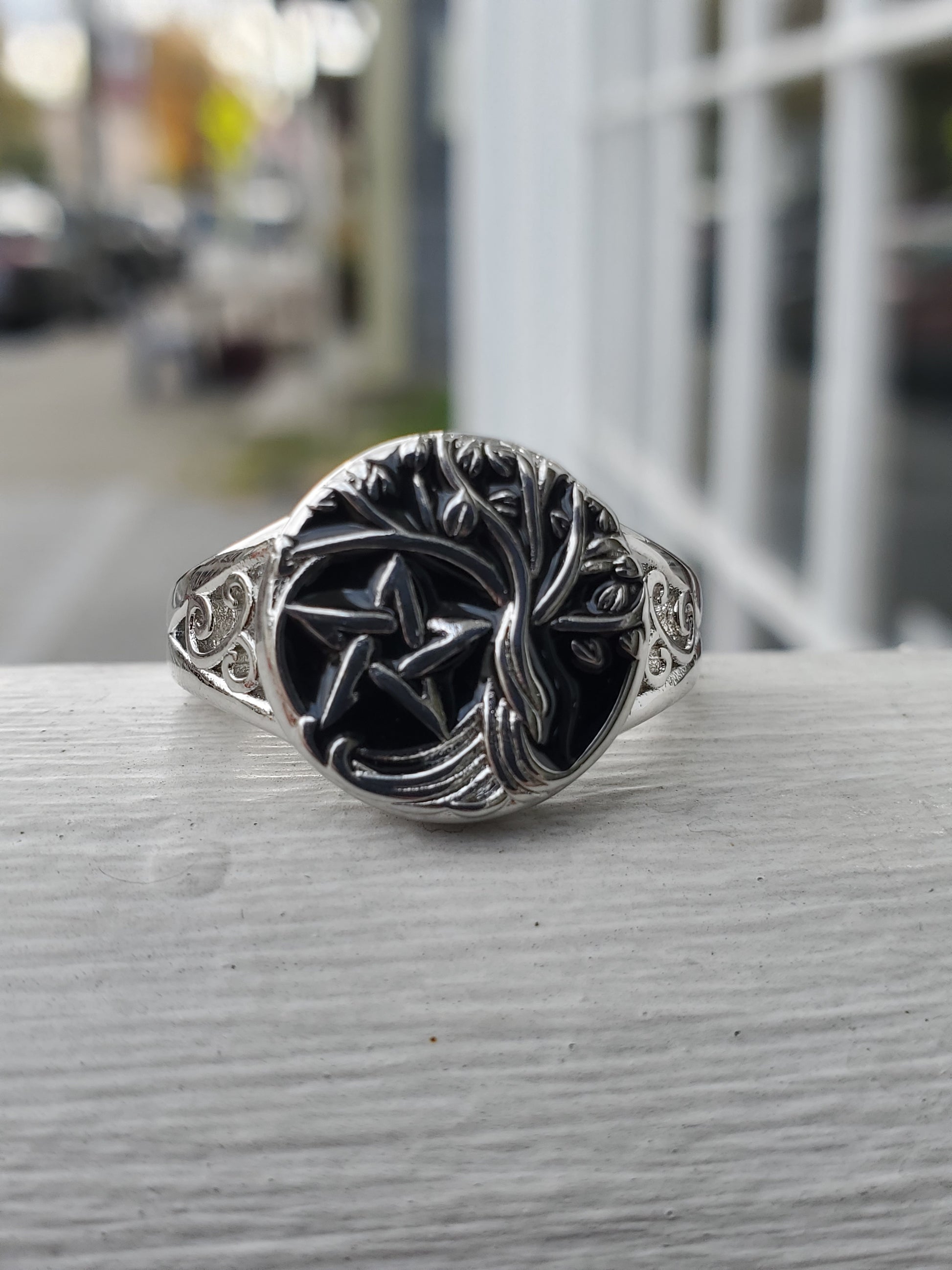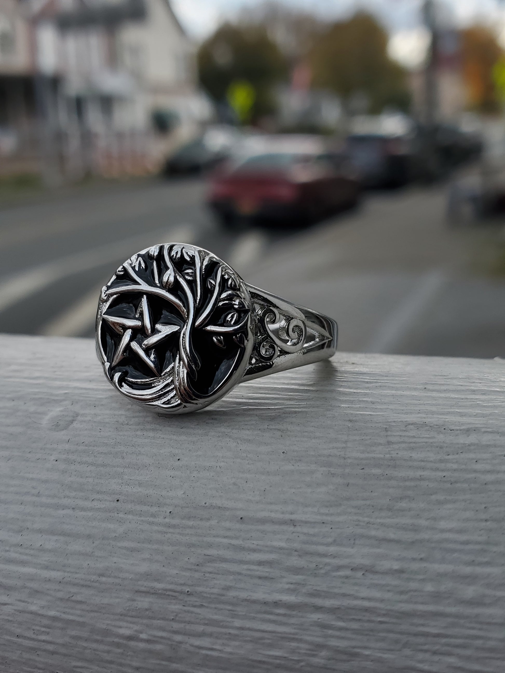 925 Sterling Silver Nature's Balance Wiccan Star Tree Ring