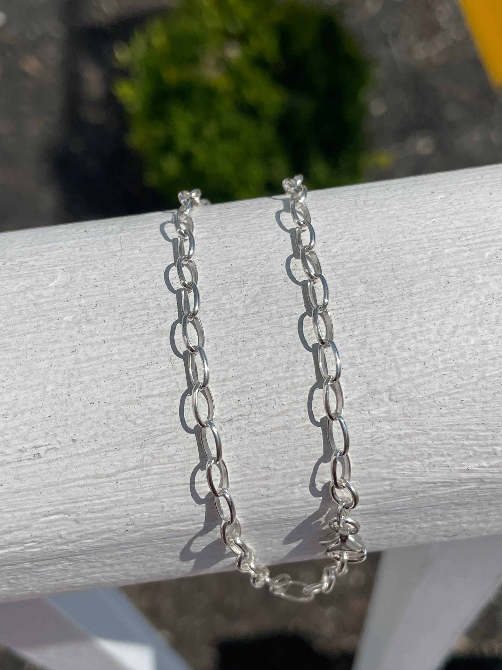 925 Sterling Silver Open Oval Link Anklet 10”.
