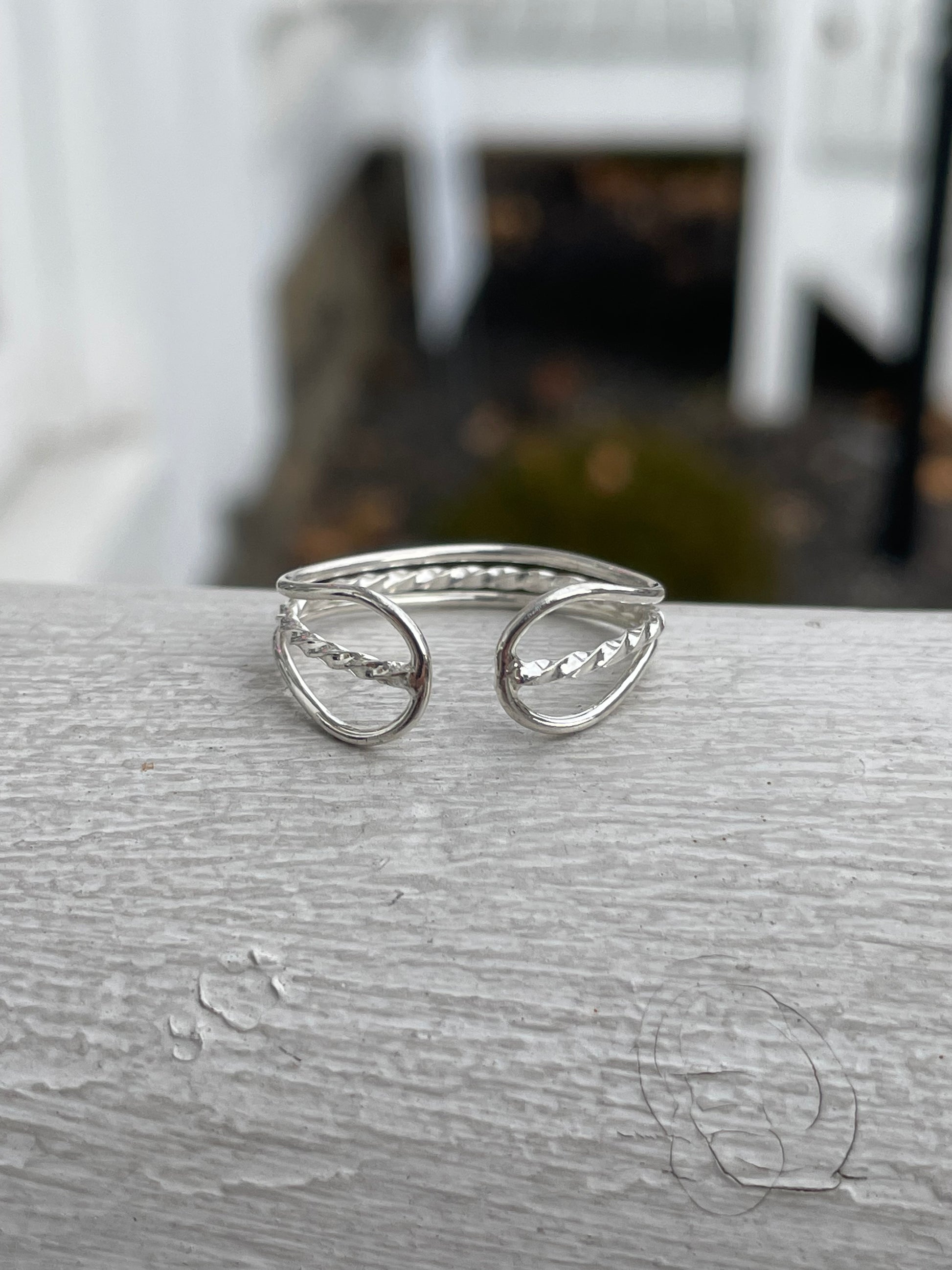 925 Sterling Silver Openwork Wire Band Ring Open Size. 2.5 grams.