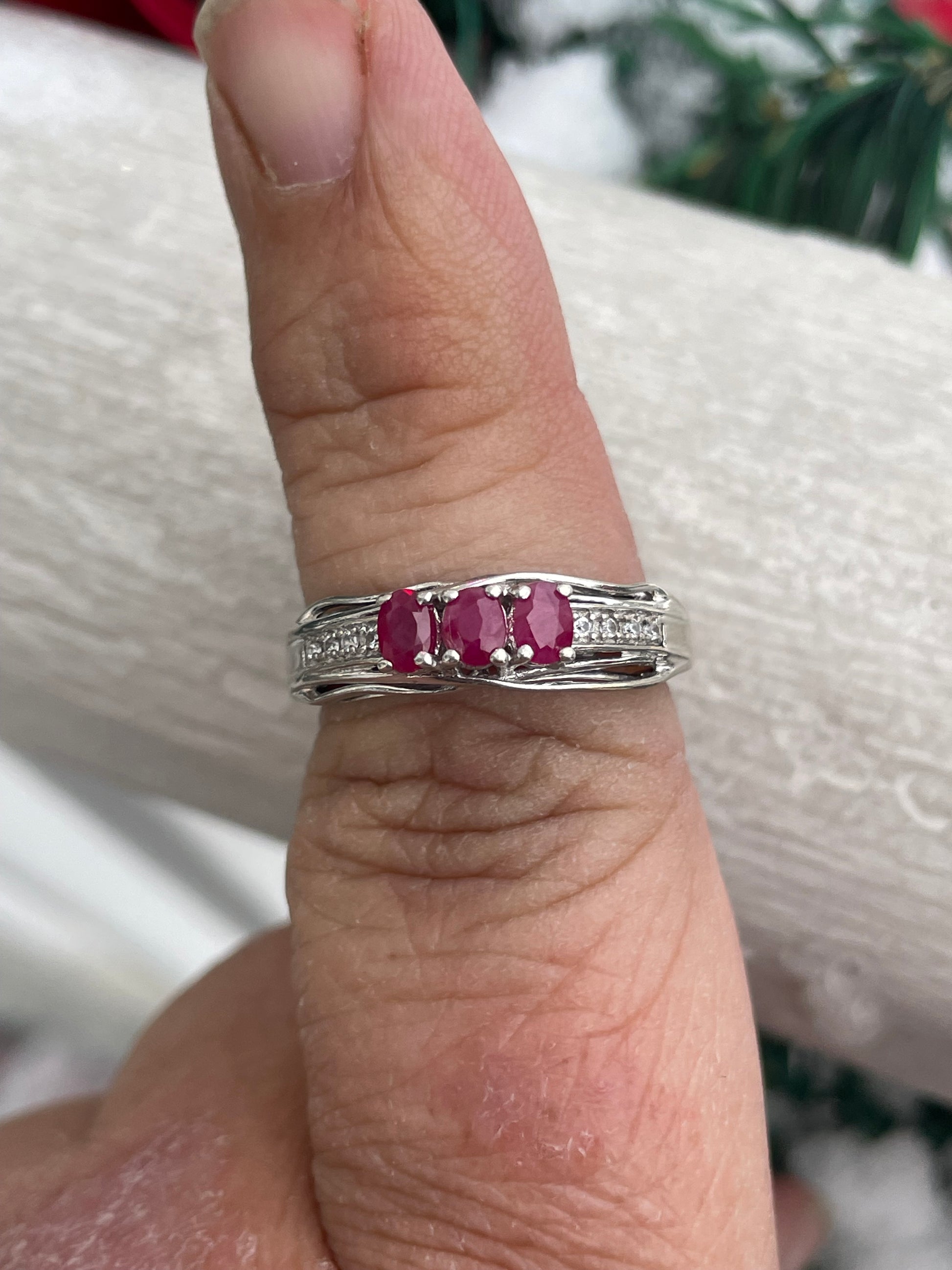 925 Sterling Silver Past Present Future Natural Ruby & Diamond Ring Size 8.