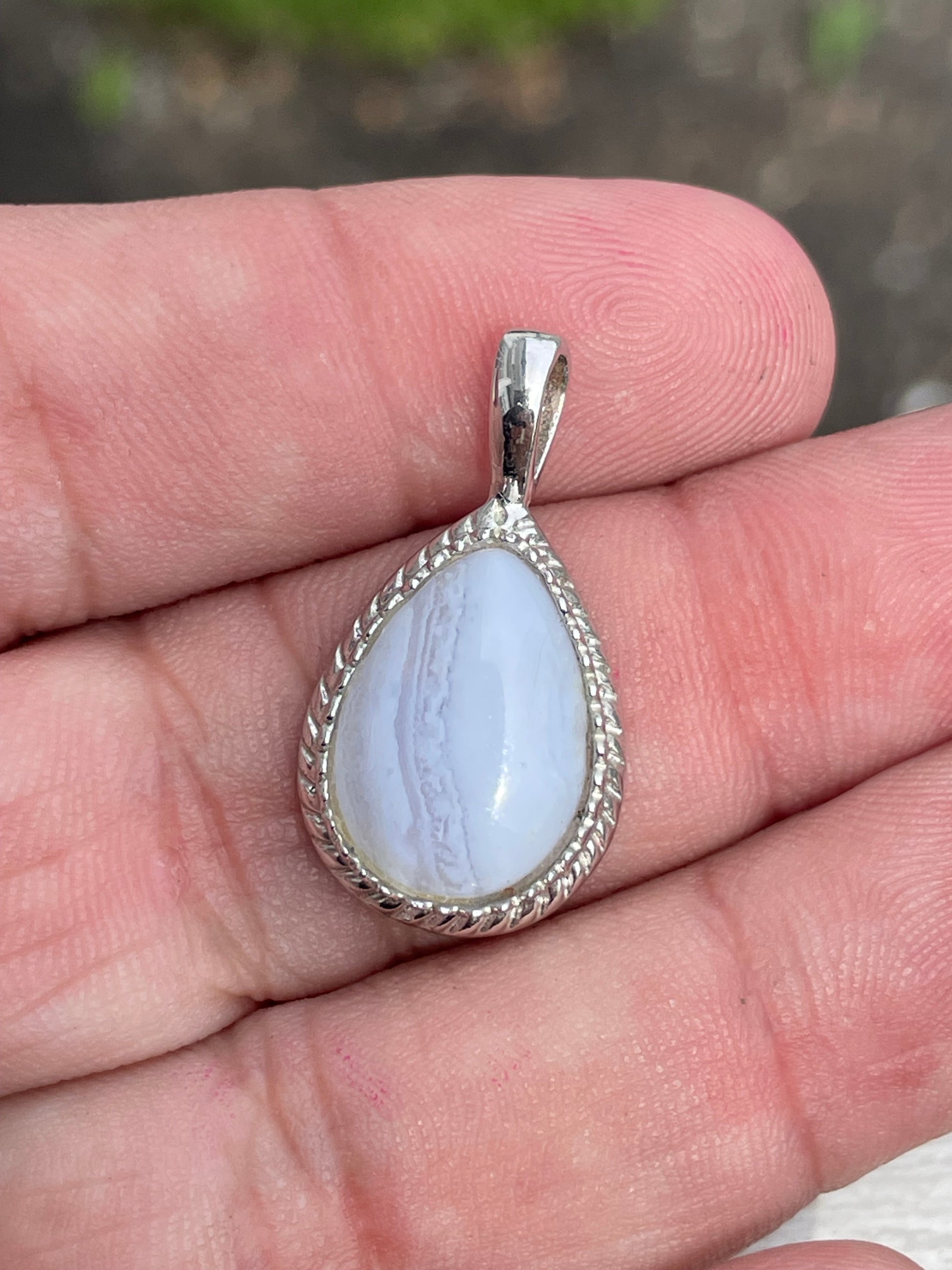 925 Sterling Silver Pear Shape Blue Lace Agate Pendant Charm. 1.1”x 0.6” 8.50ct stone.