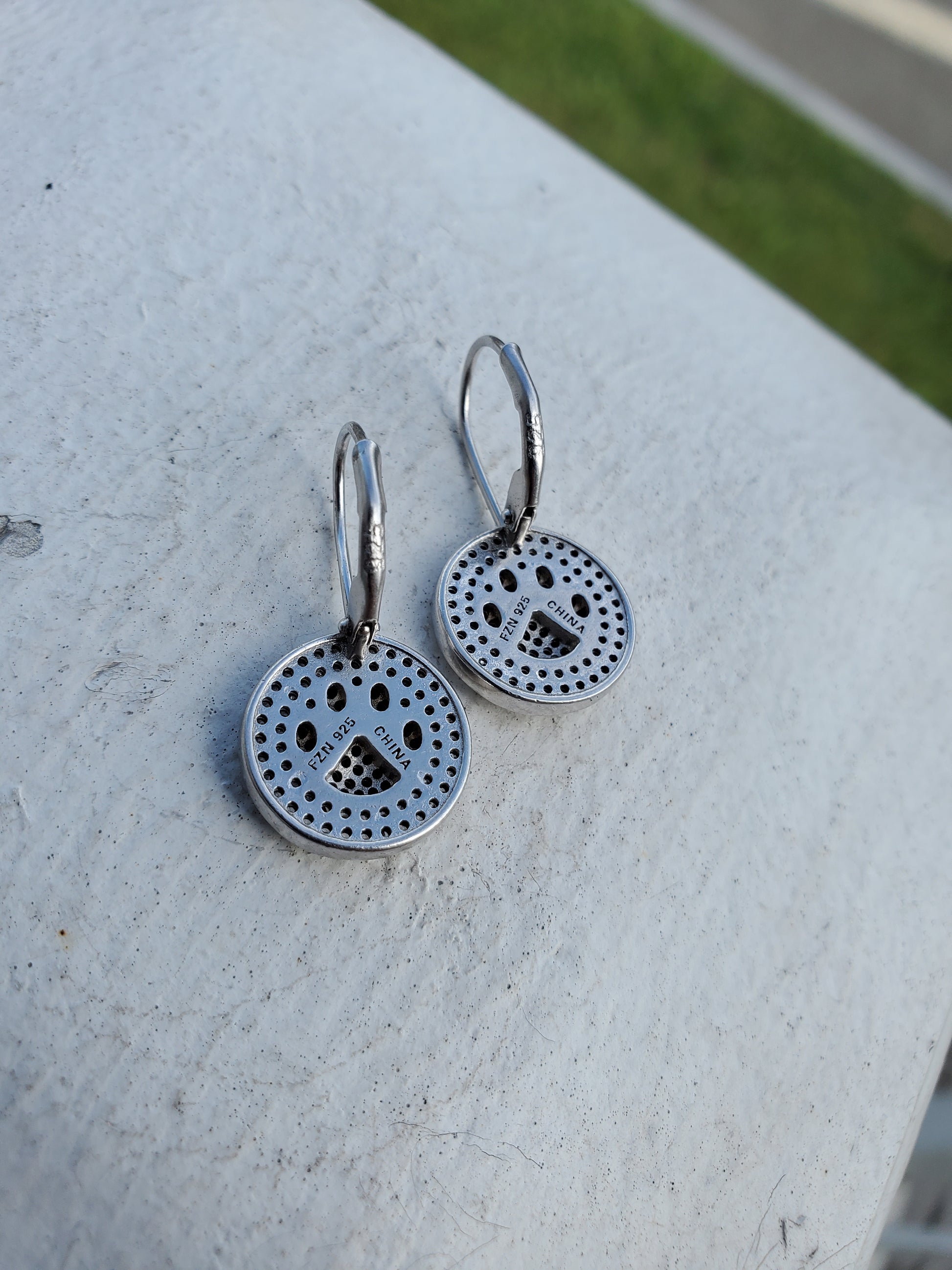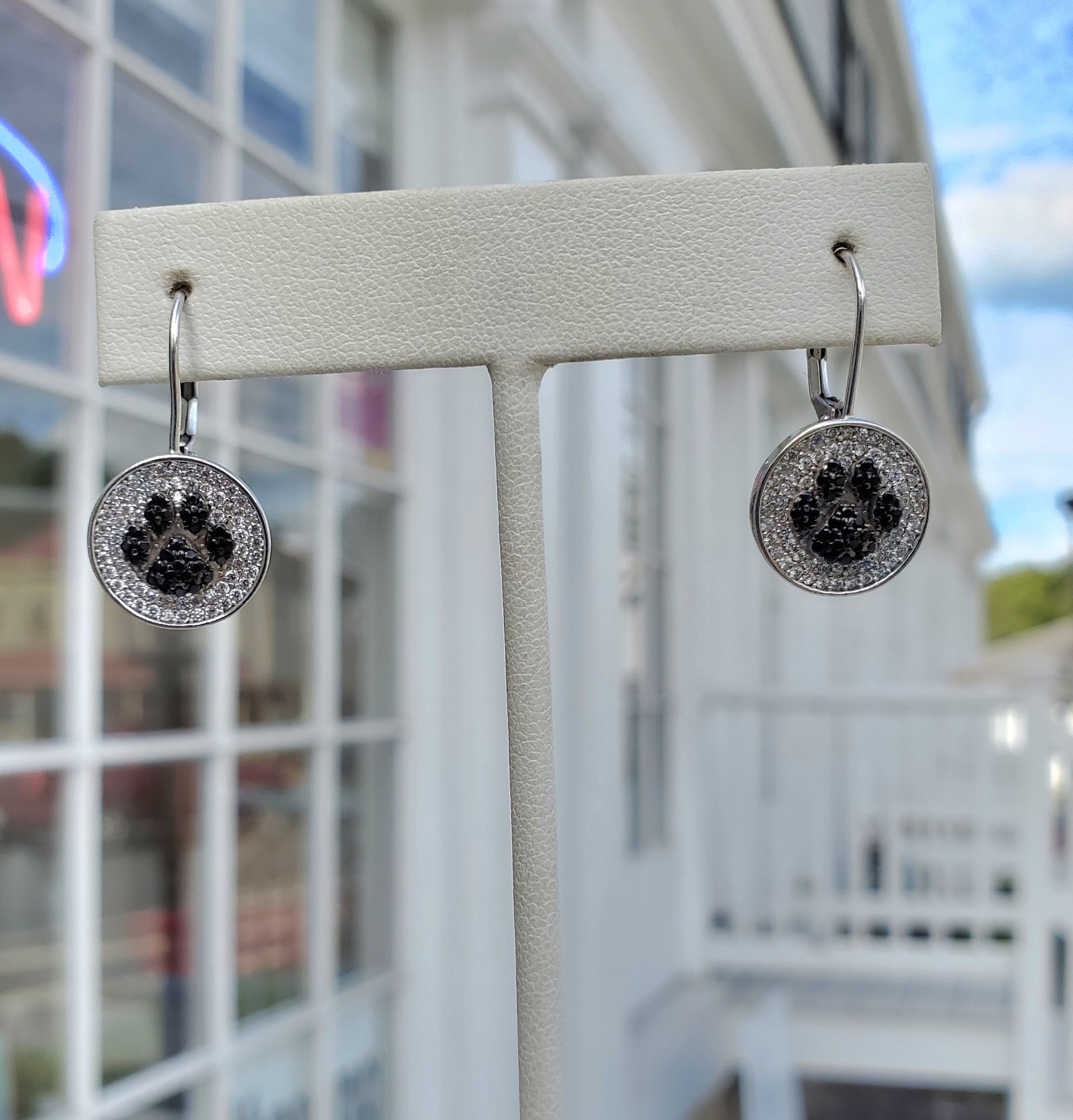925 Sterling Silver Pet Pawprint Black & Clear Zirconia Leaverback Earrings