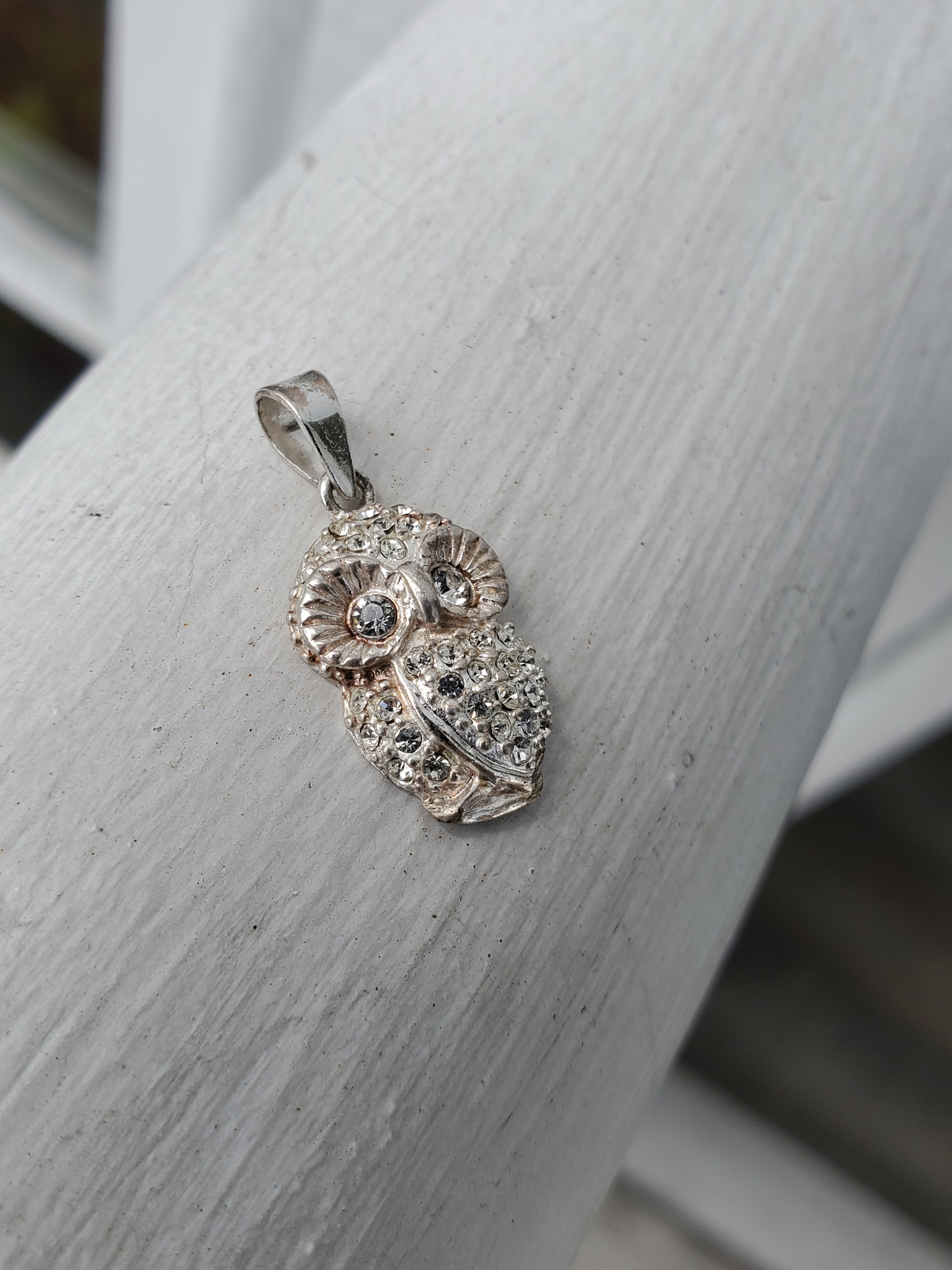 925 Sterling Silver Petite Owl CZ Zirconia Pendant Charm