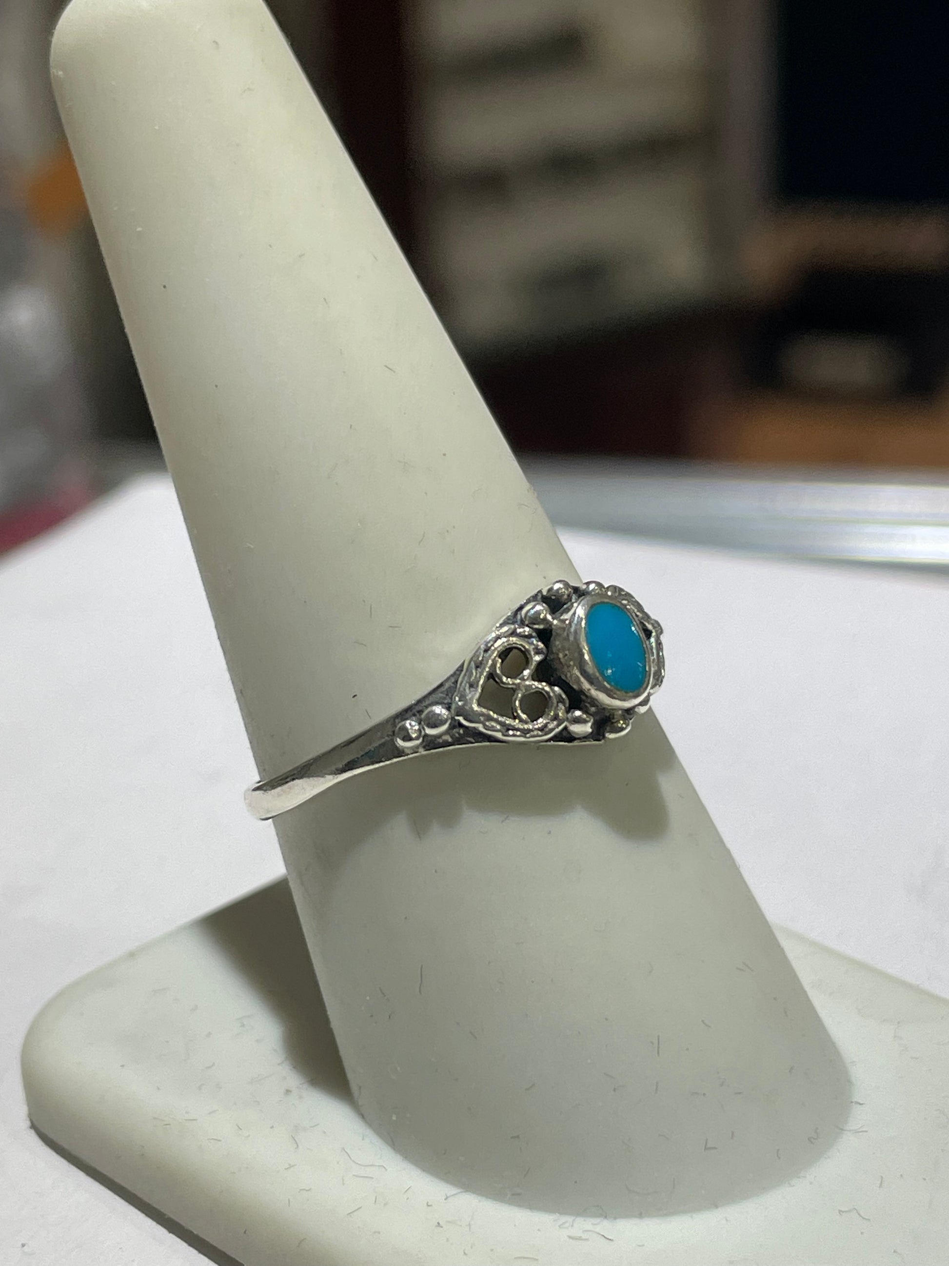 925 Sterling Silver Petite Scrollwork Filigree Turquoise Ring Size 8