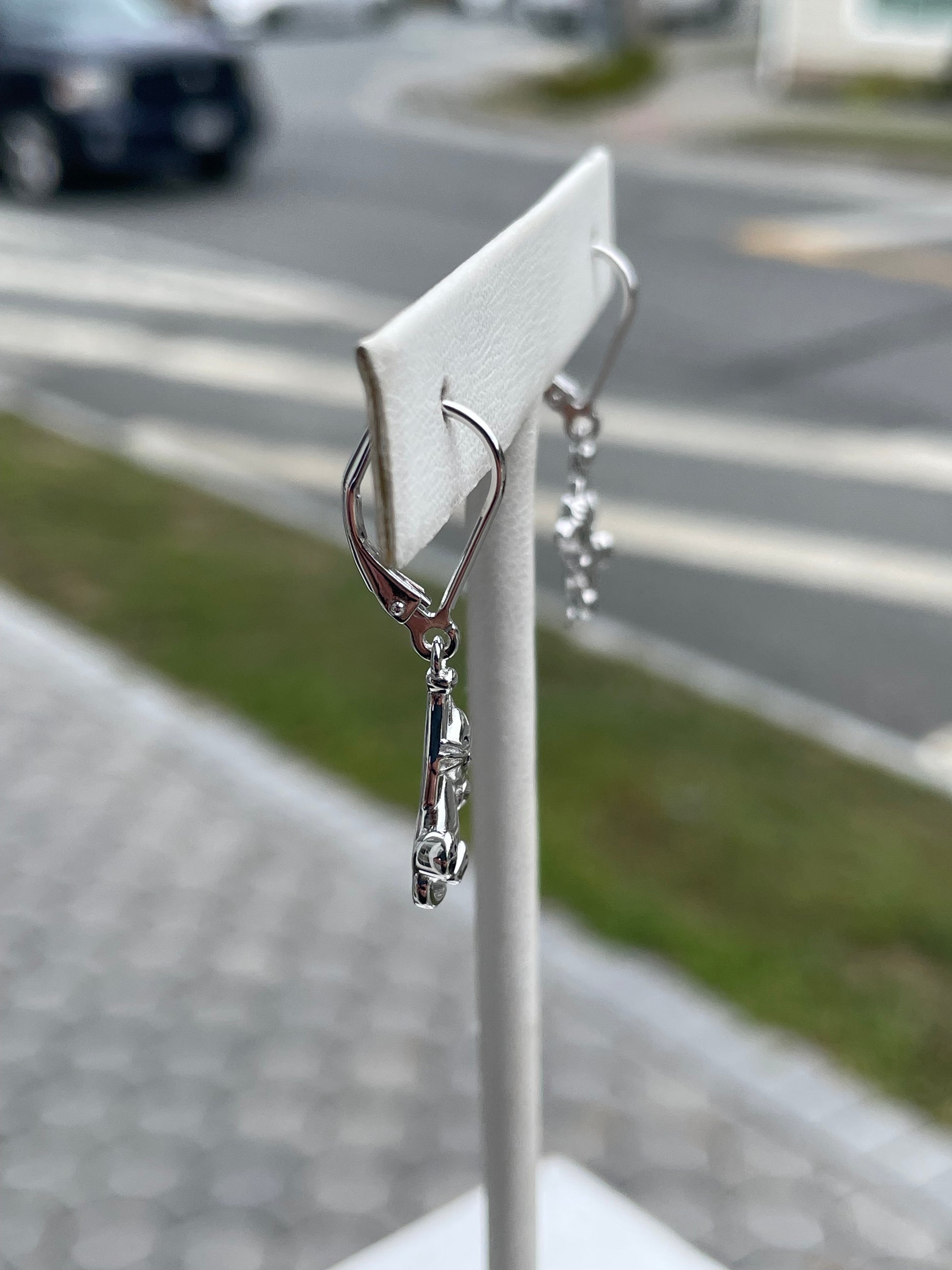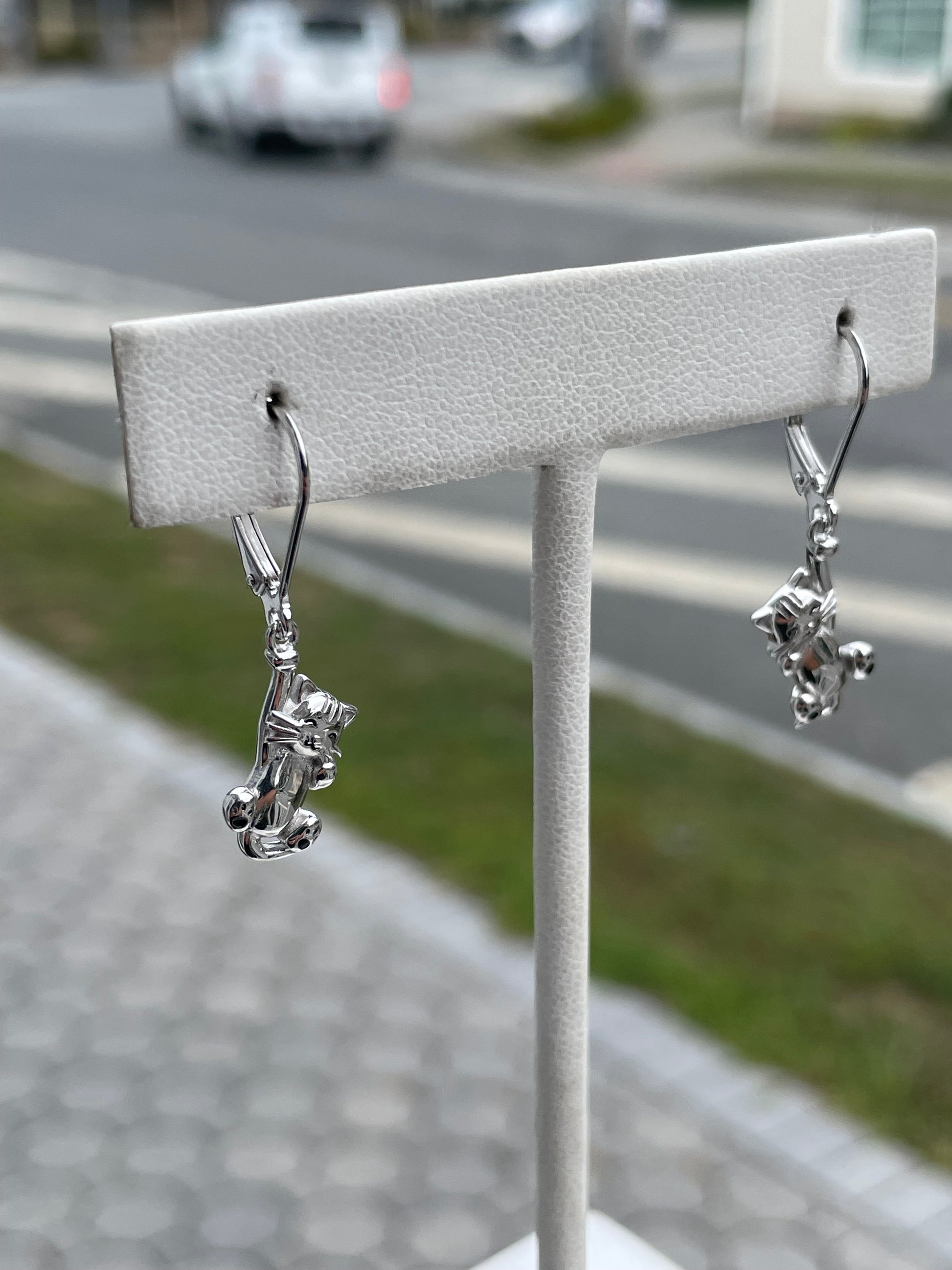 925 Sterling Silver Cartoon Cat Face Heart Dangle Earrings. 1”drop. French ear wire hooks.