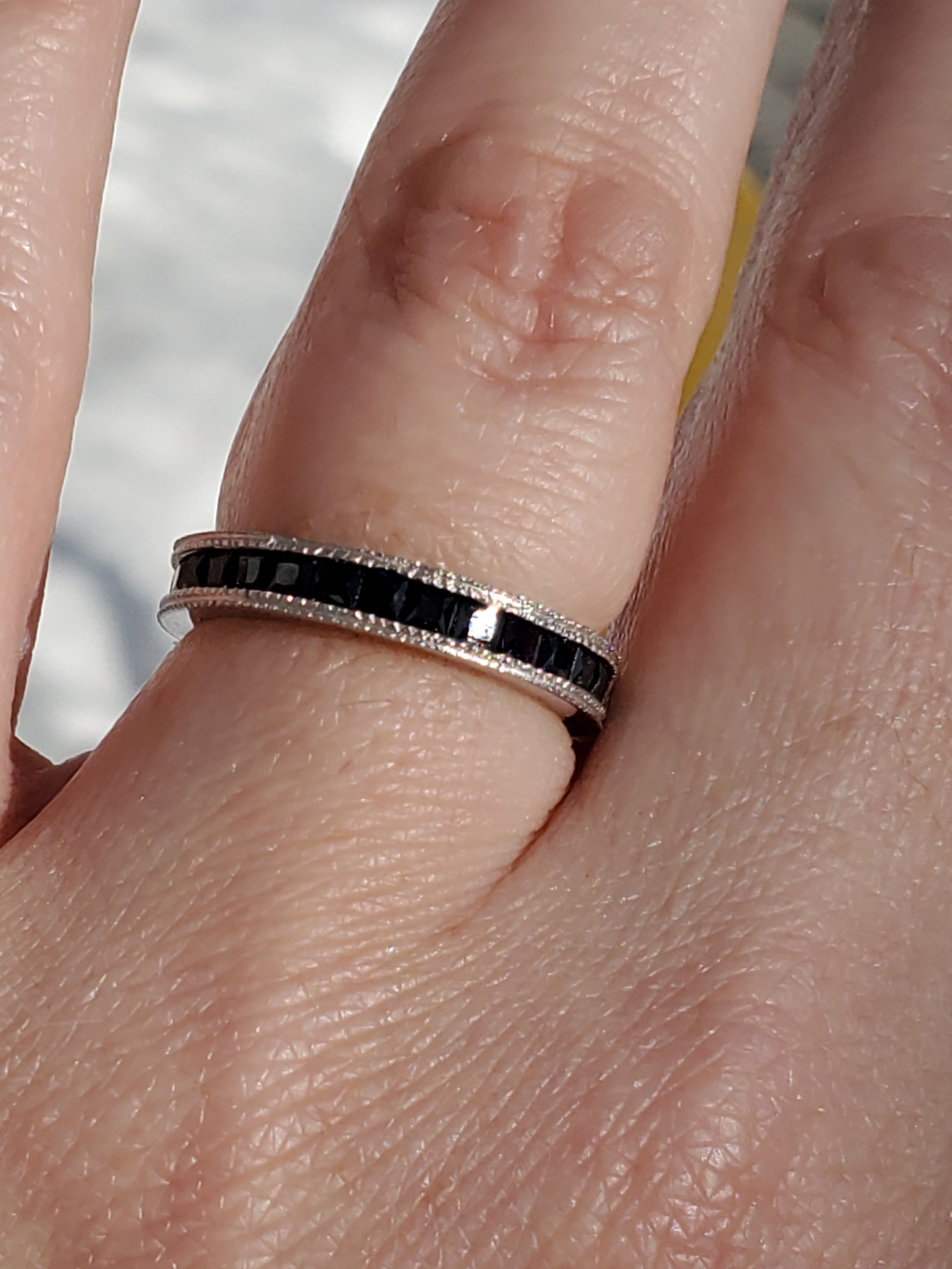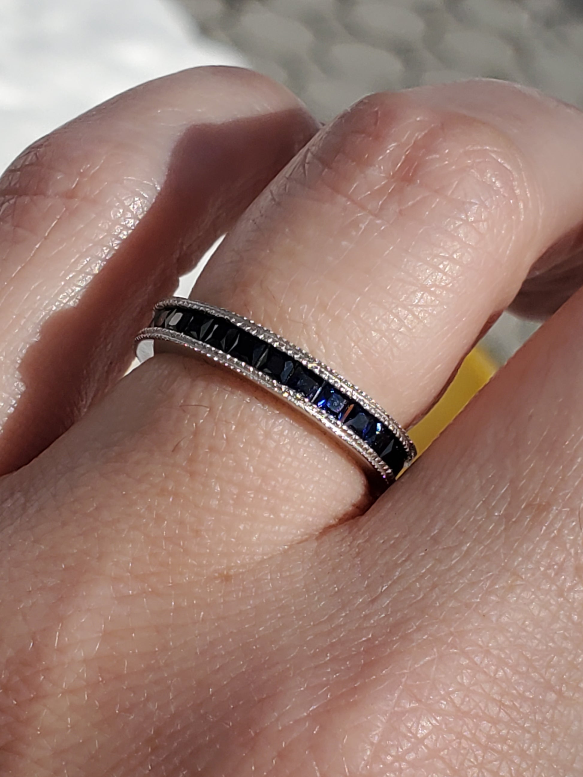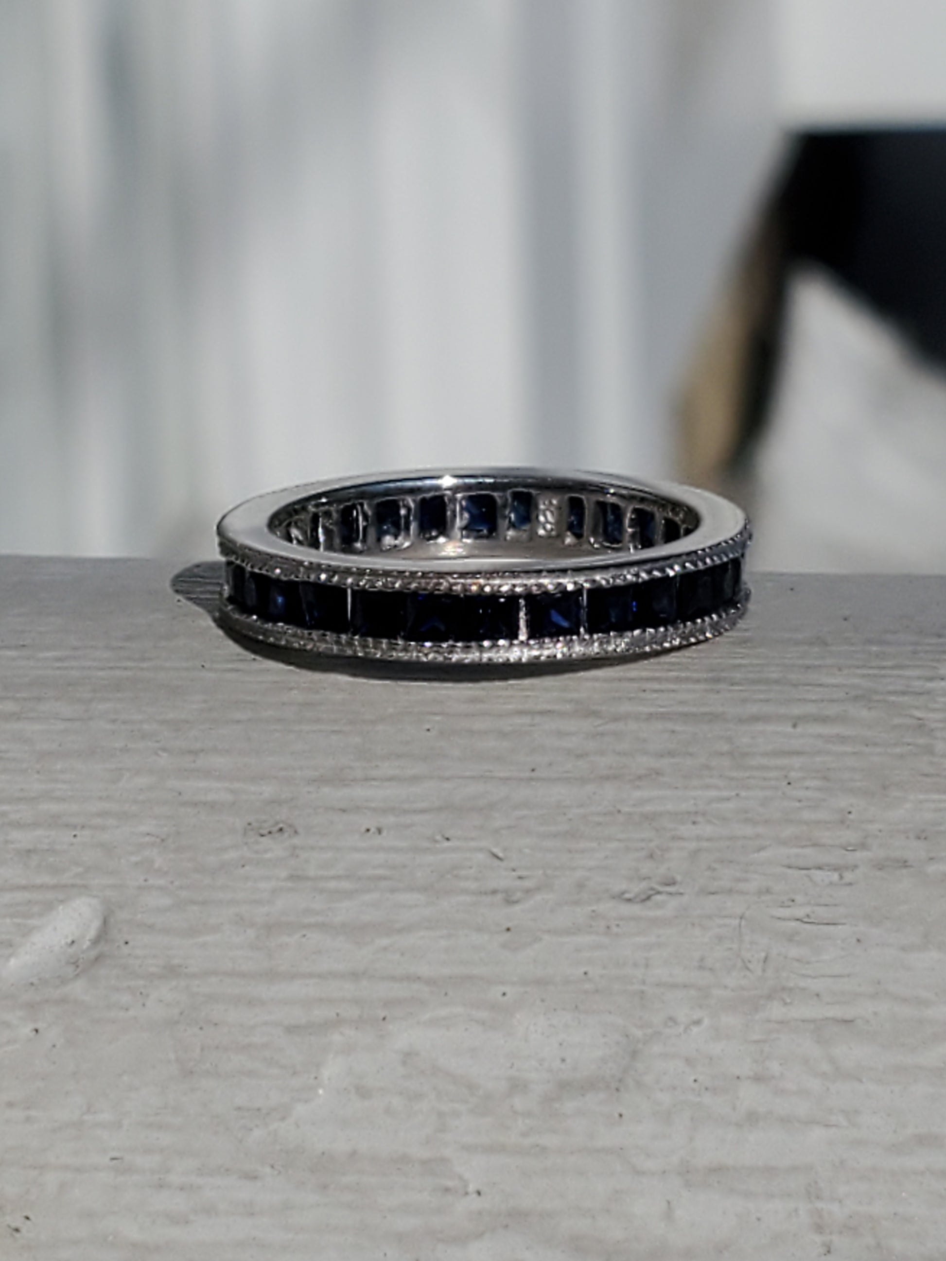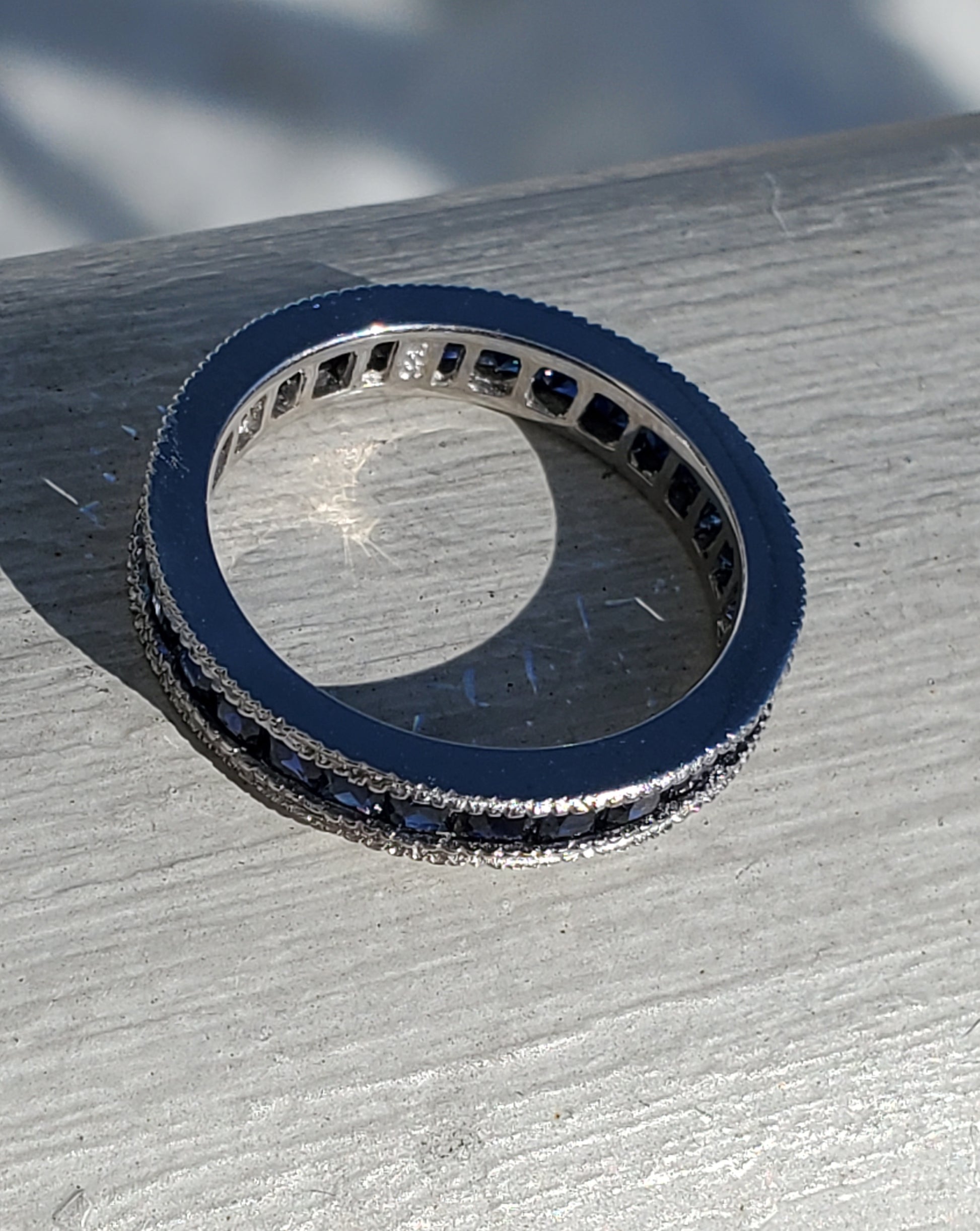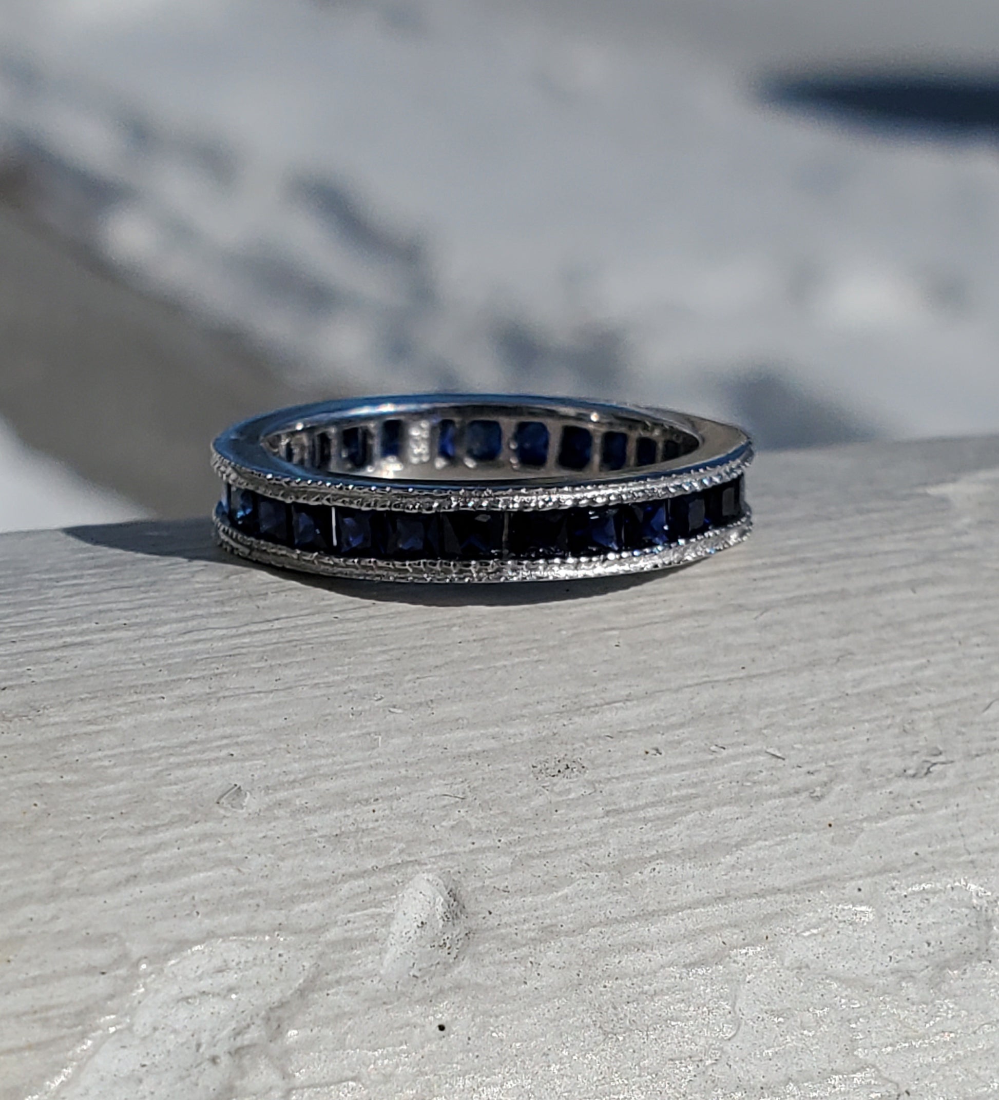 925 Sterling Silver Princess Cut Channel Set Lab Sapphire Eternity Band Ring