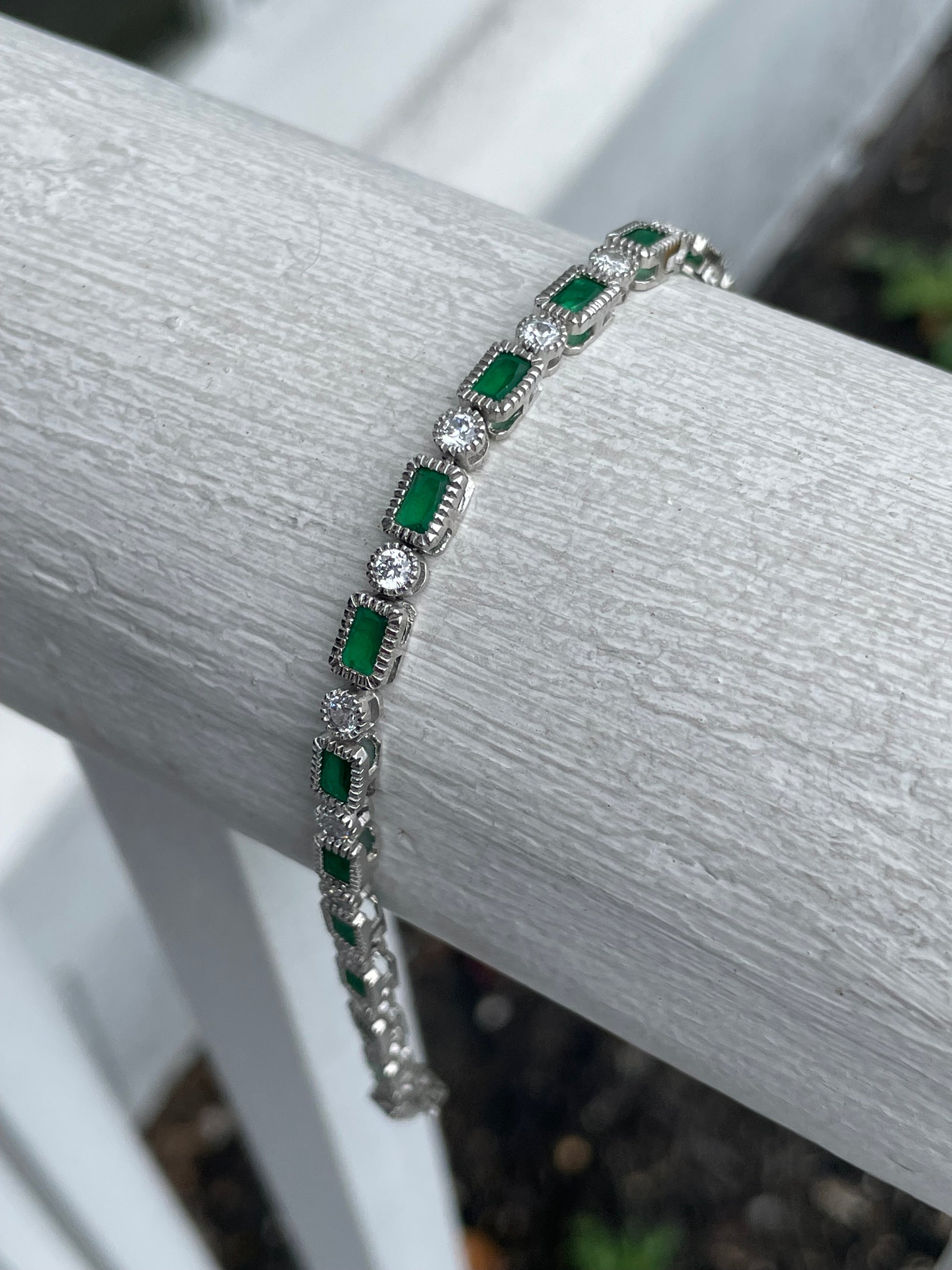 925 Sterling Silver Simulated Emerald & Cz Tennis Bracelet