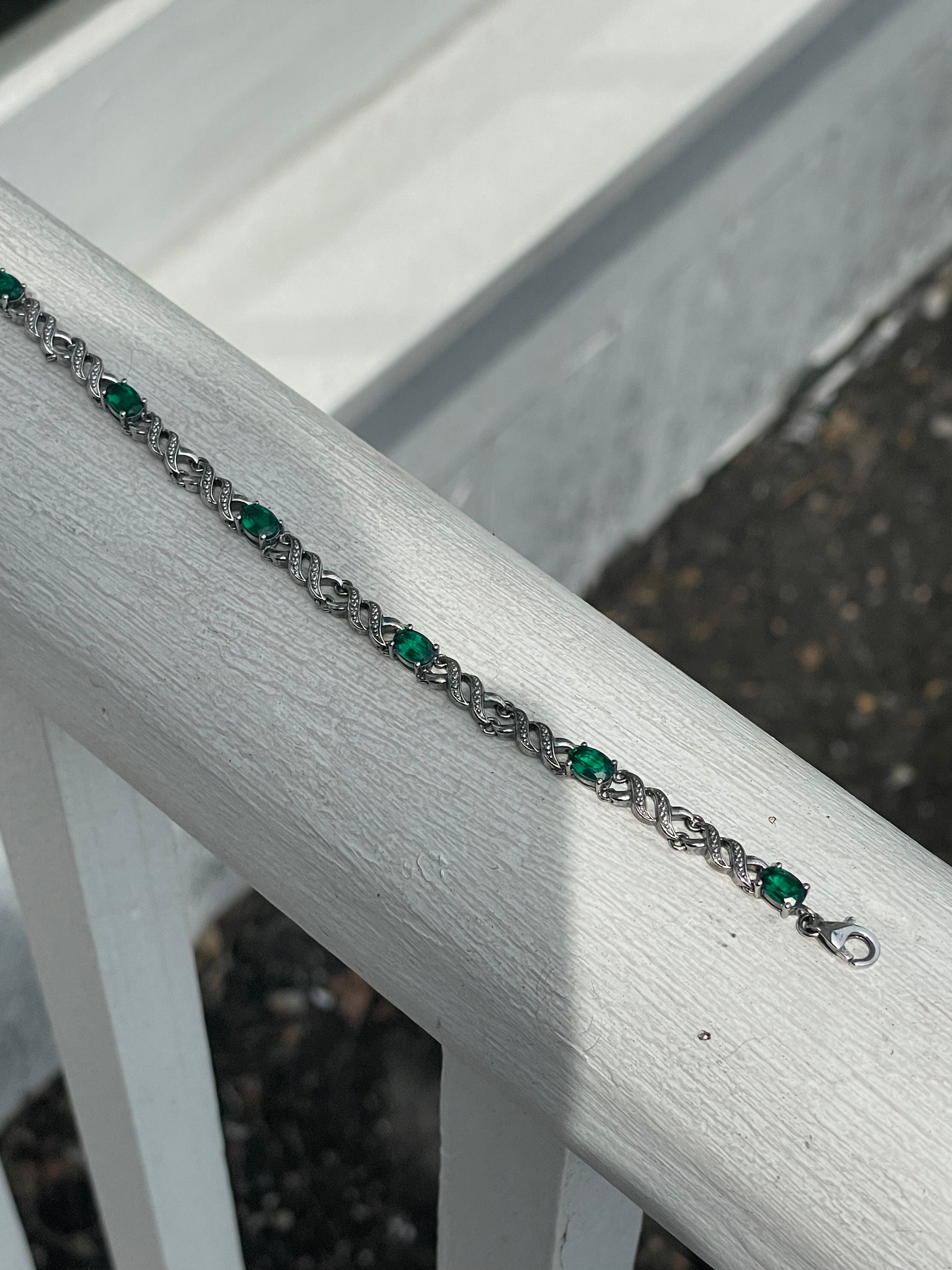 925 Sterling Silver Simulated Emerald Stone Tennis Bracelet 6.75”