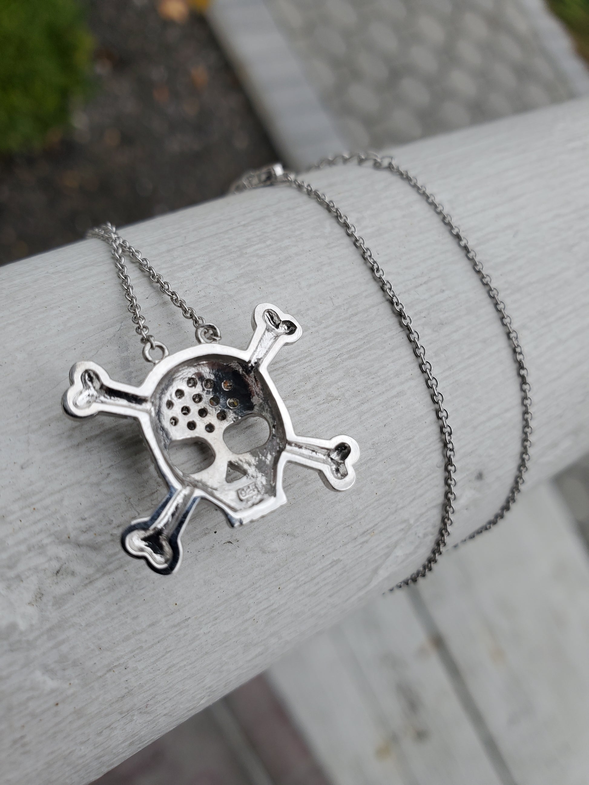 925 Sterling Silver Skull & Crossbones CZ Zirconia Necklace