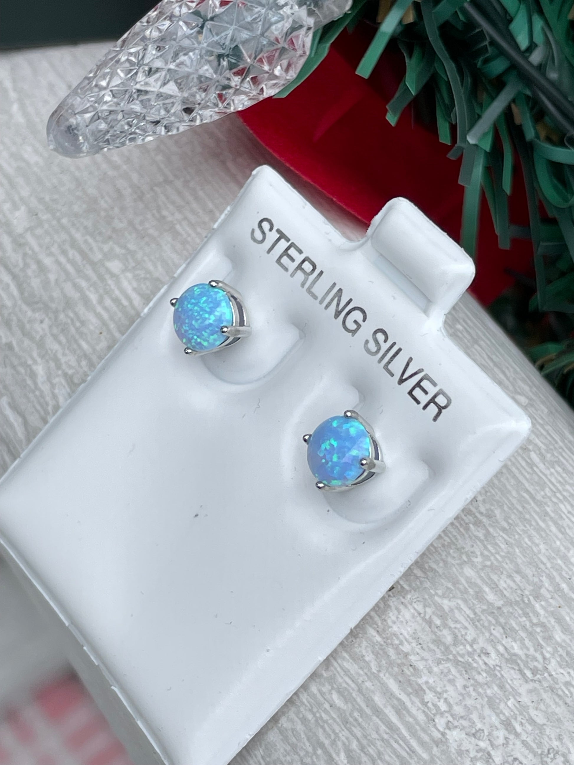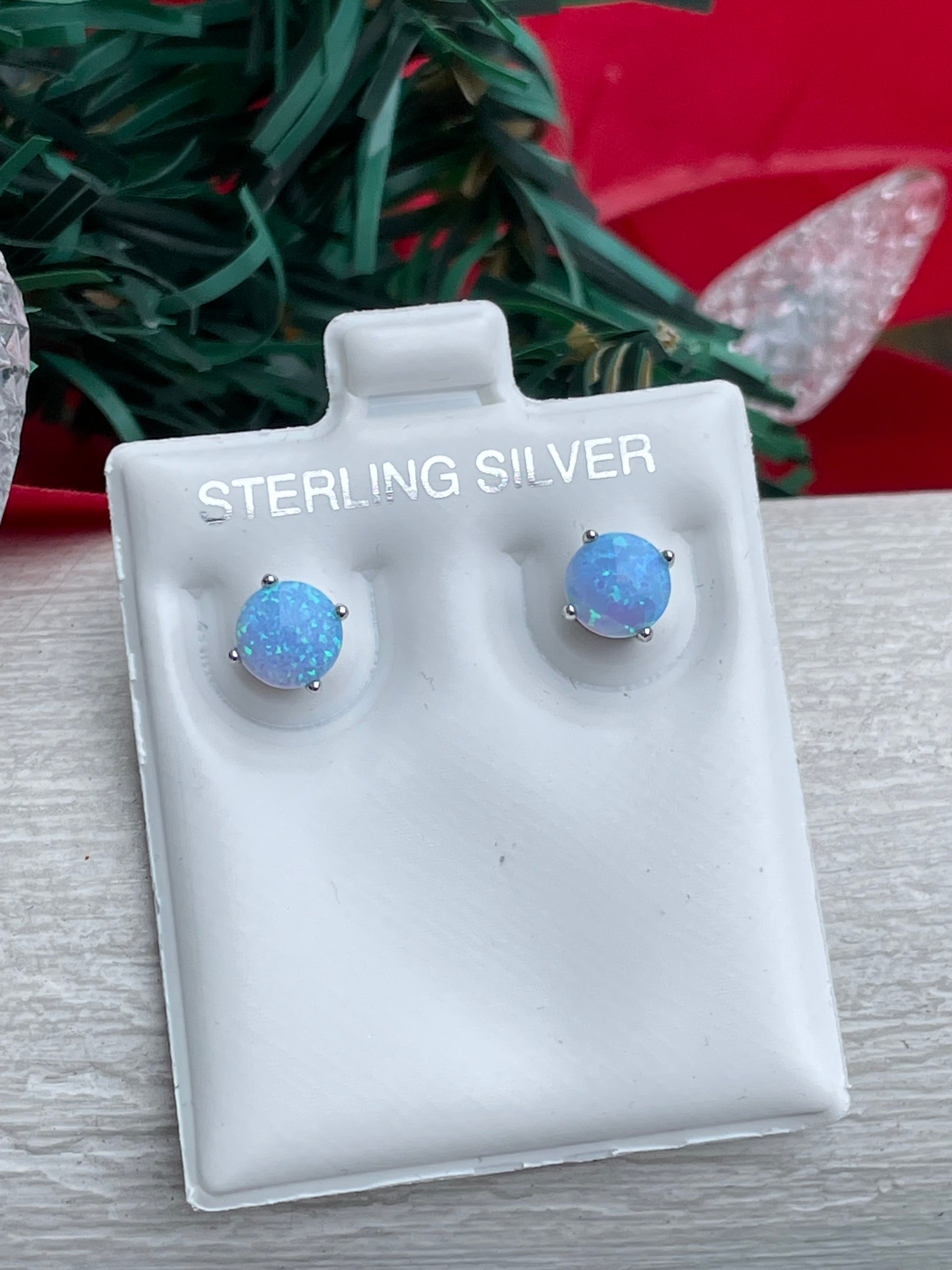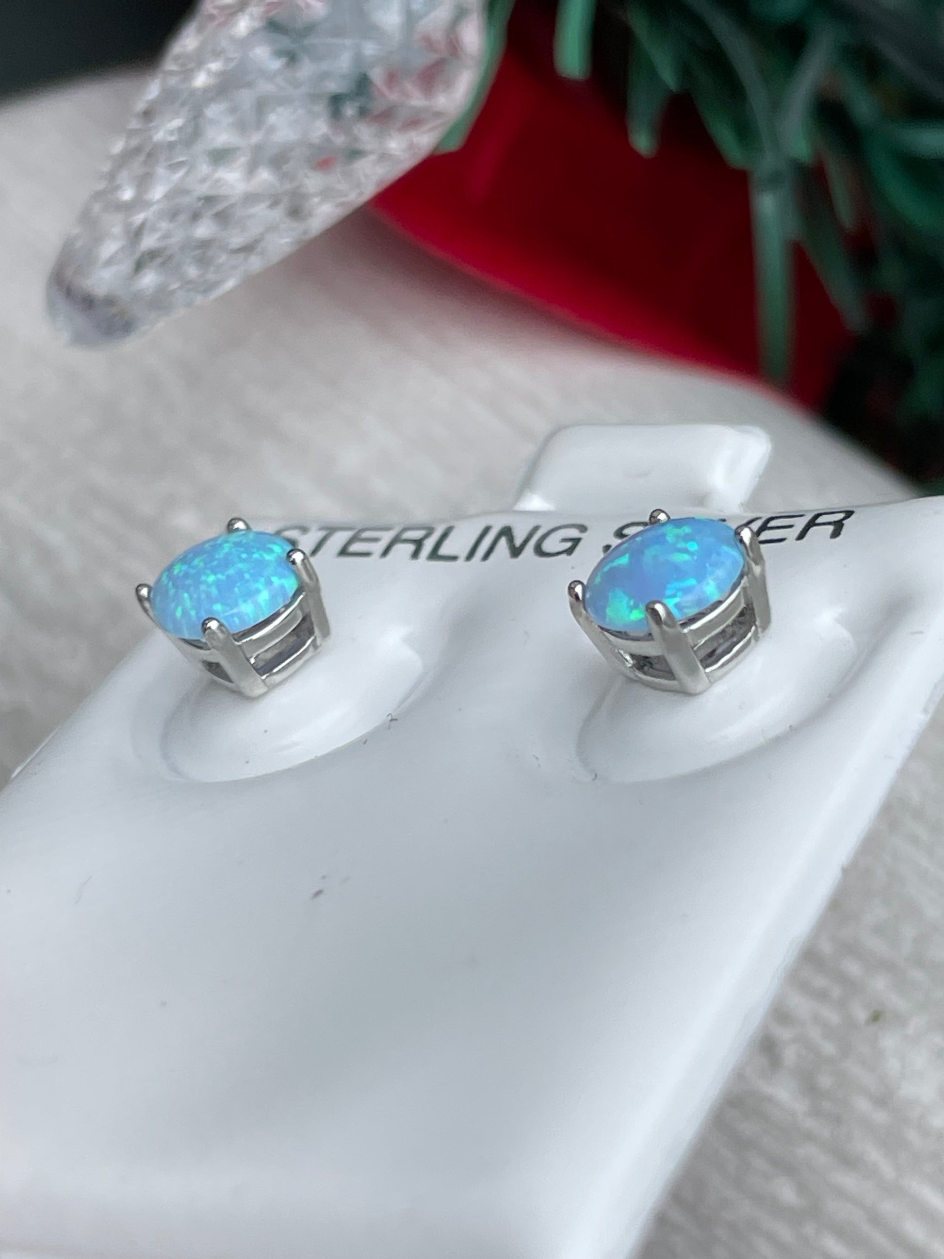 925 Sterling Silver Snowy Blue Opal Stud Earrings