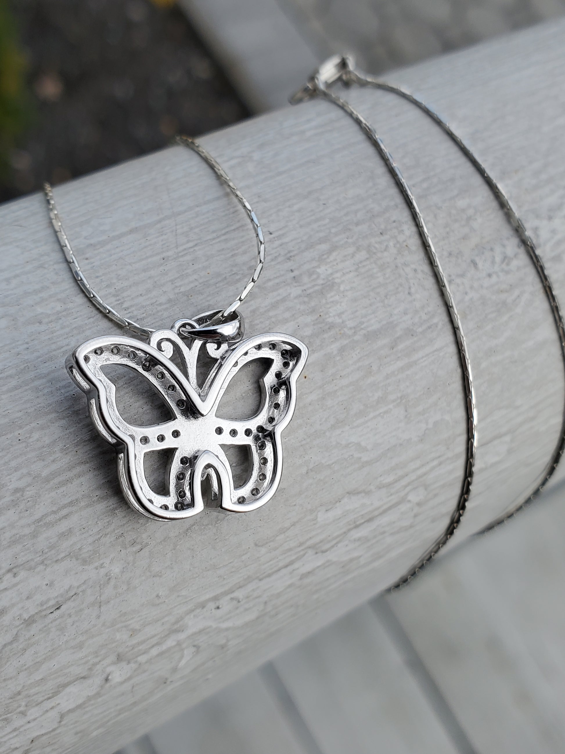 925 Sterling Silver Sparkling Butterfly CZ Zirconia Pendant Necklace