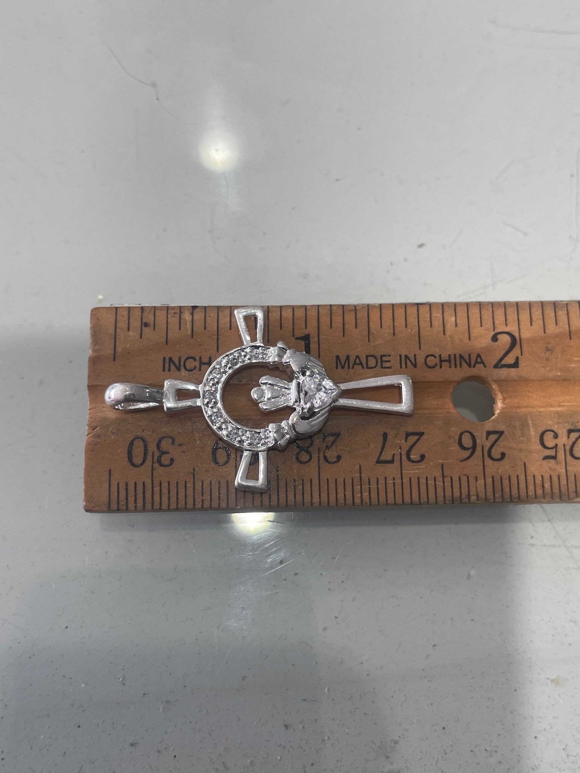 925 Sterling Silver Sparkling Irish Claddagh Celtic Cross Pendant. 2.9 grams. (1.25”x1.00”)
