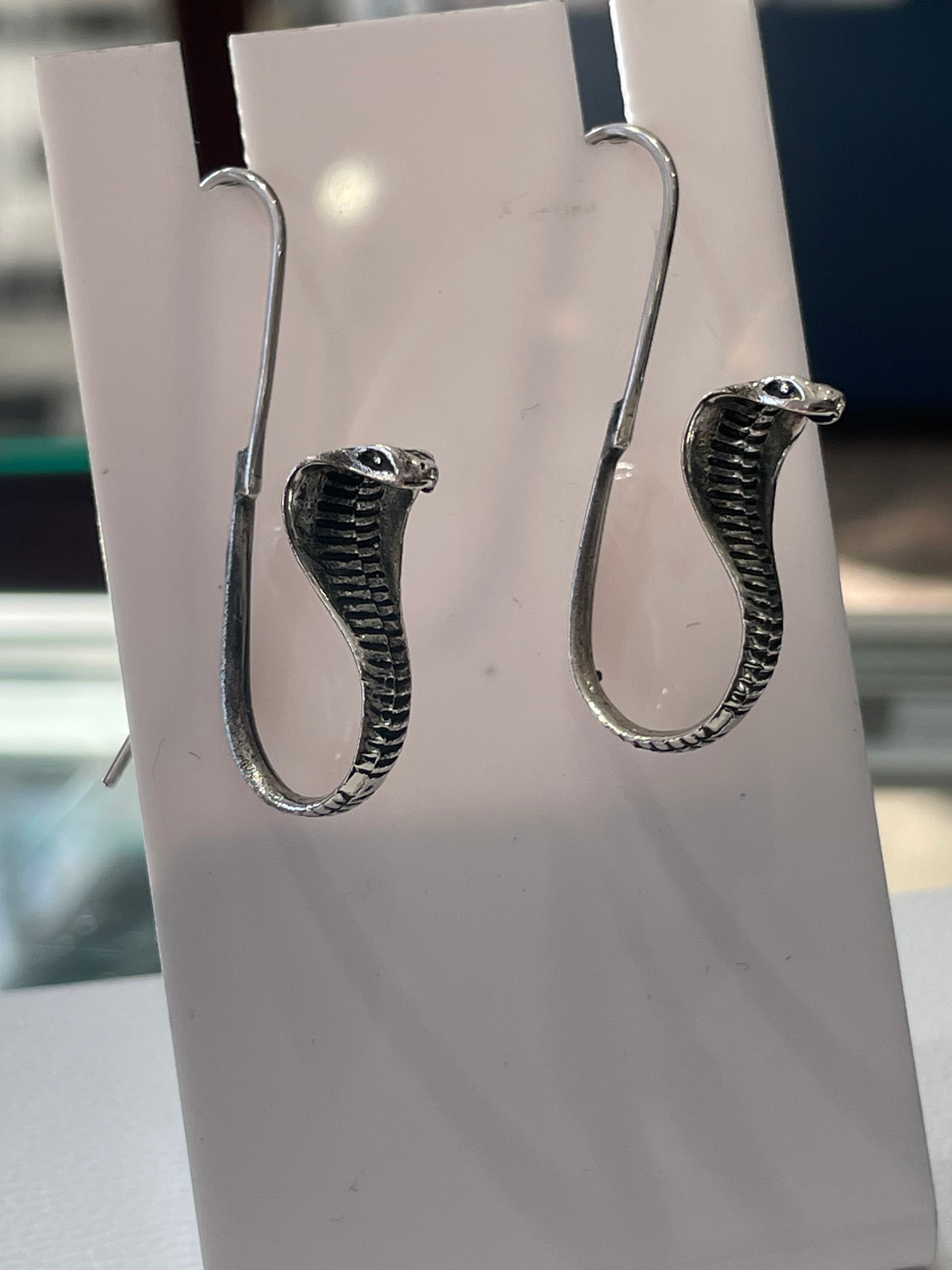 925 Sterling Silver Striking Cobra Earrings. French Ear Wire Hooks. 1.5” drop. (4.4 grams)