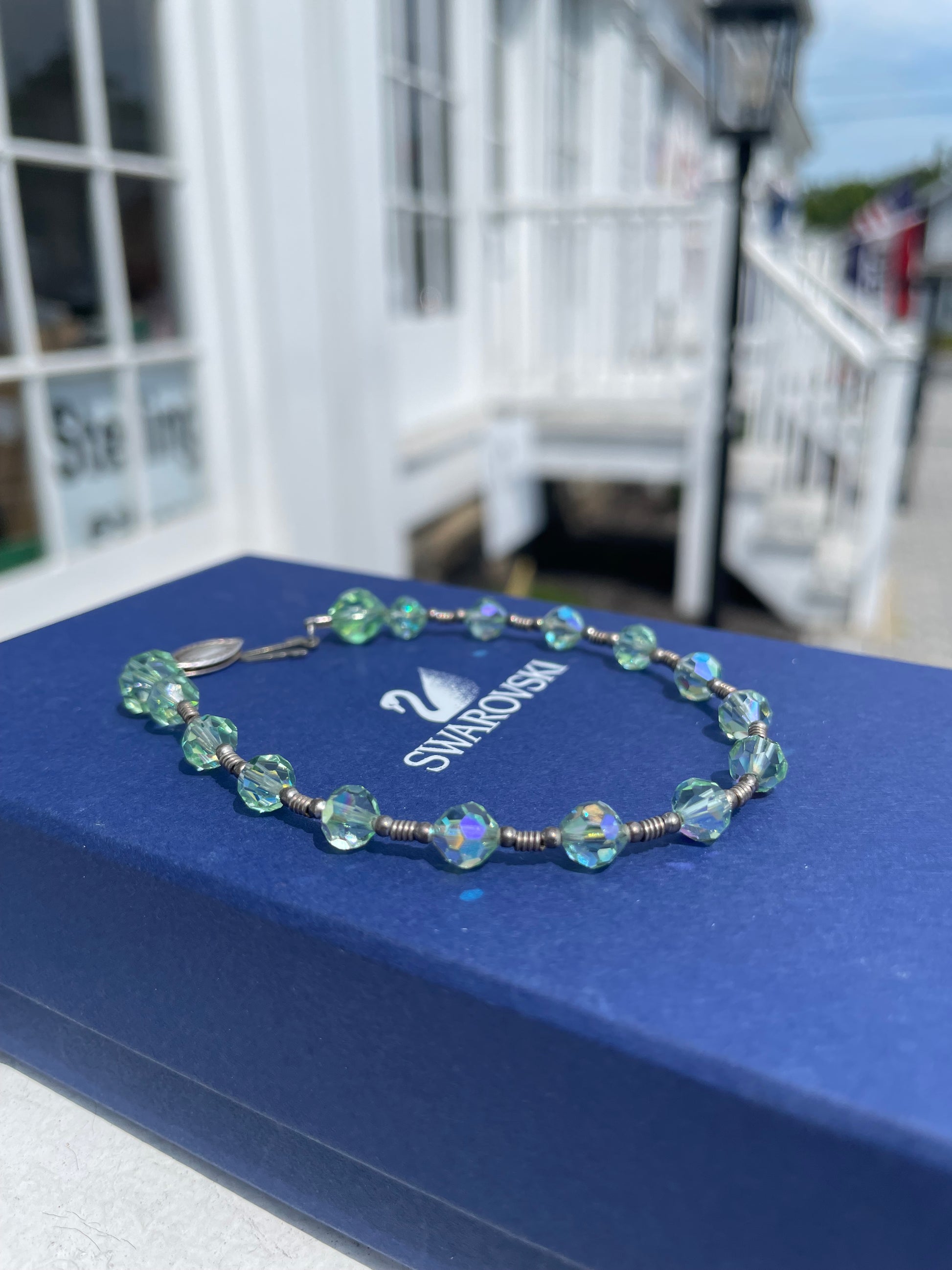 925 Sterling Silver Swarovski Elements Green Crystal Beaded Bracelet 7.5”