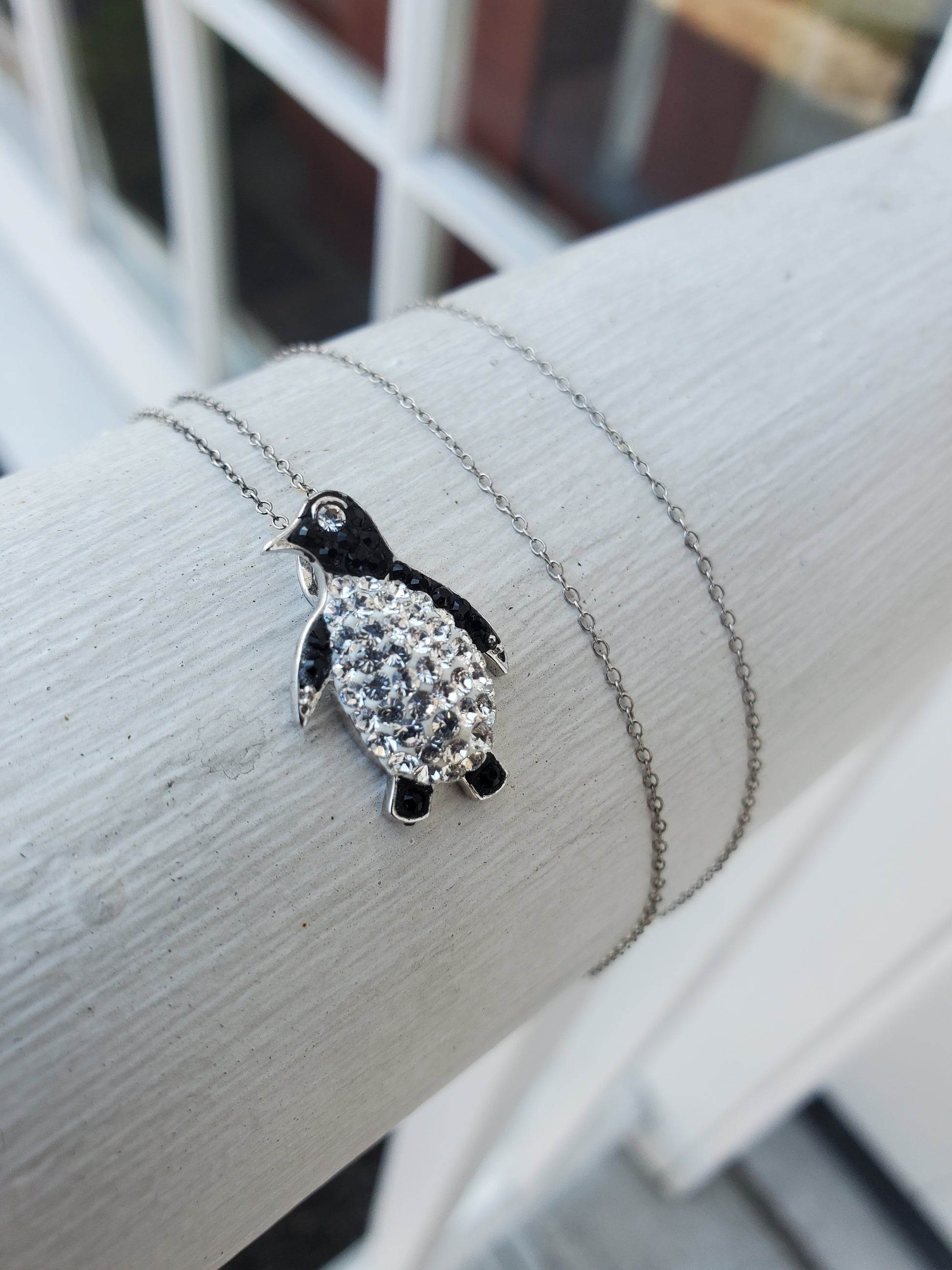 925 Sterling Silver Swarovski Elements Sparklinh Penguin Necklace